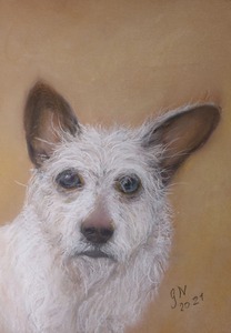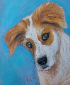 Portret van Atos, een vermiste hond waar ik met het zoekteam mee naar heb helpen zoeken.. Helaas is zijn avontuur niet goed afgelopen