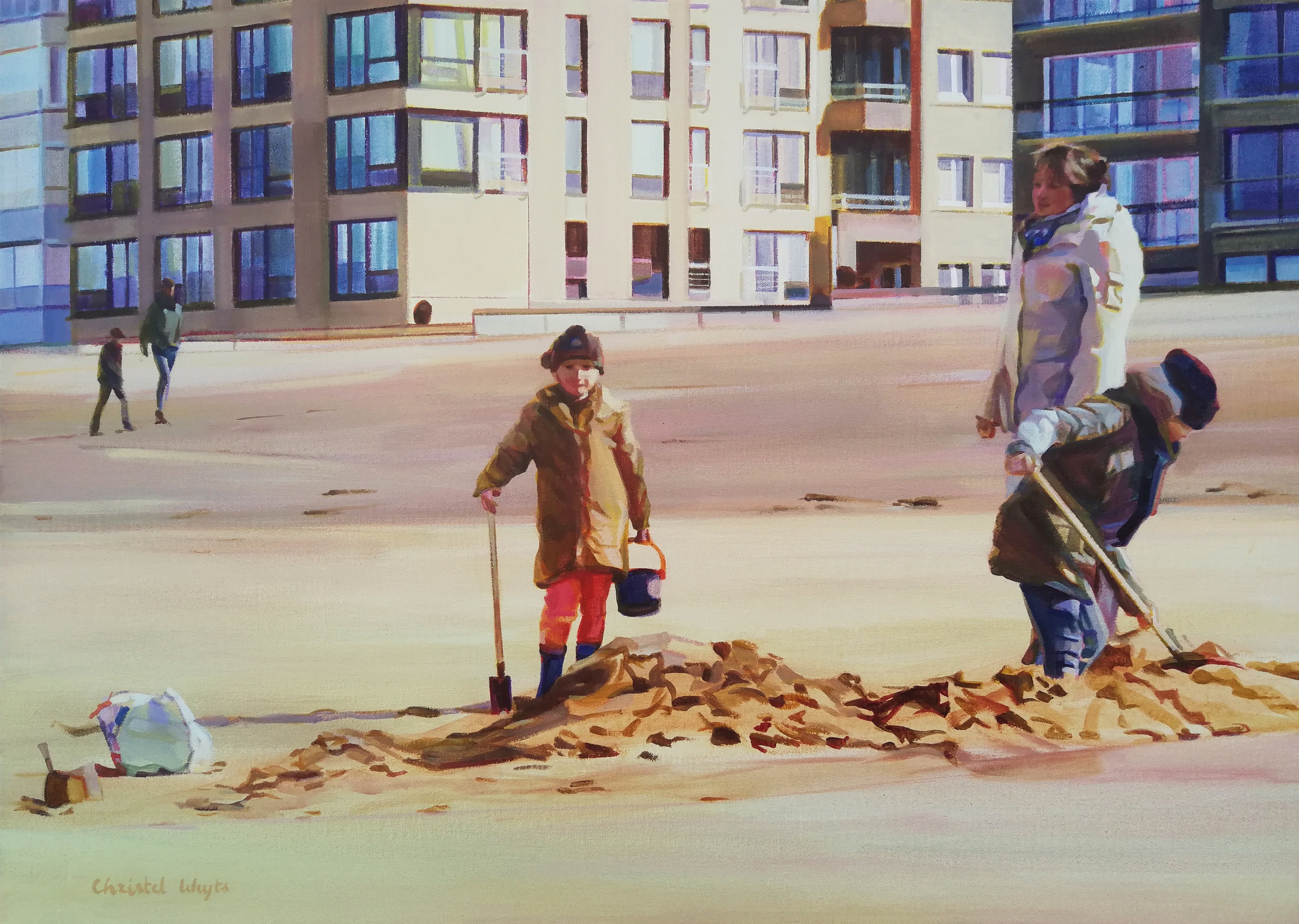 Christel Weyts maakt acrylschilderijen over de mens en zijn leefomgeving. Ze filtert taferelen die vooral het esthetische en de harmonie in een situatie willen benadrukken. Ze houdt aparte composities vast binnen de grenzen van het canvas. Licht en beweging zijn hierbij vaak belangrijk.