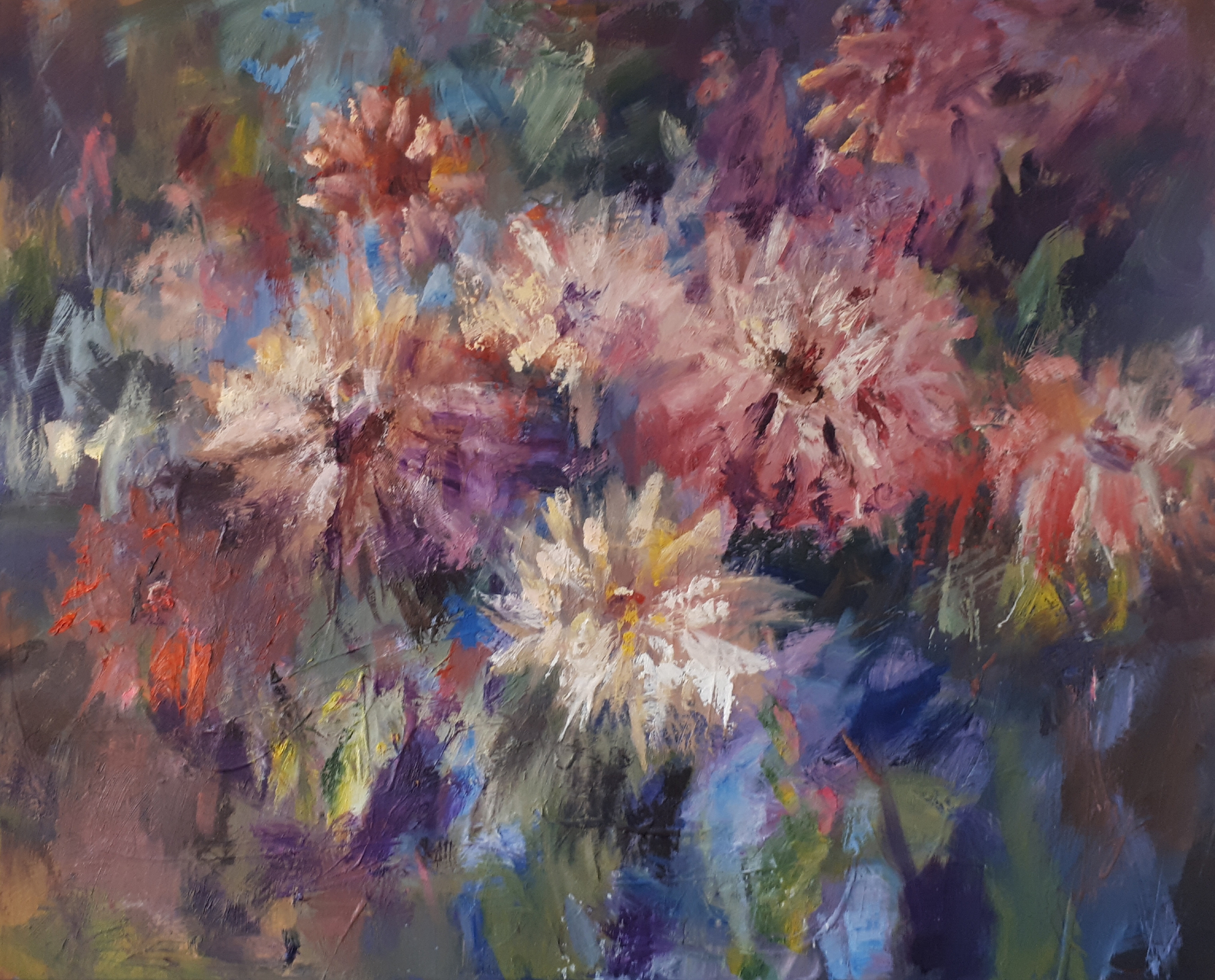 Bloemen Tuin Olieverf Olieverfschilderij Zomer Bloemenschilderij Dahlias