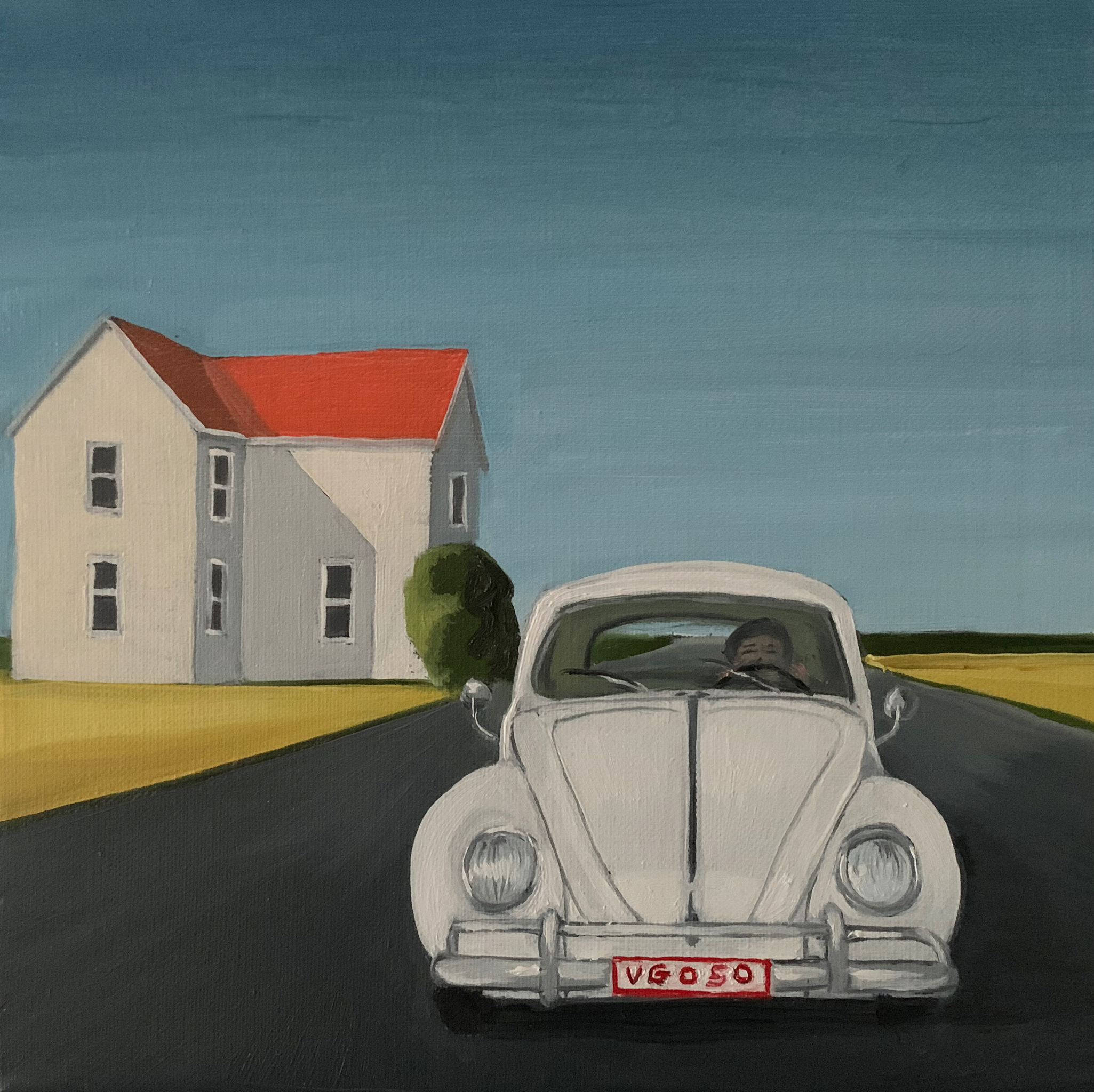 Een witte volkswagen bevindt zich in een landelijke omgeving en je zou zo kunnen vermoeden dat hij de stad heeft verlaten om tot rust te komen in een meer desolate omgeving.