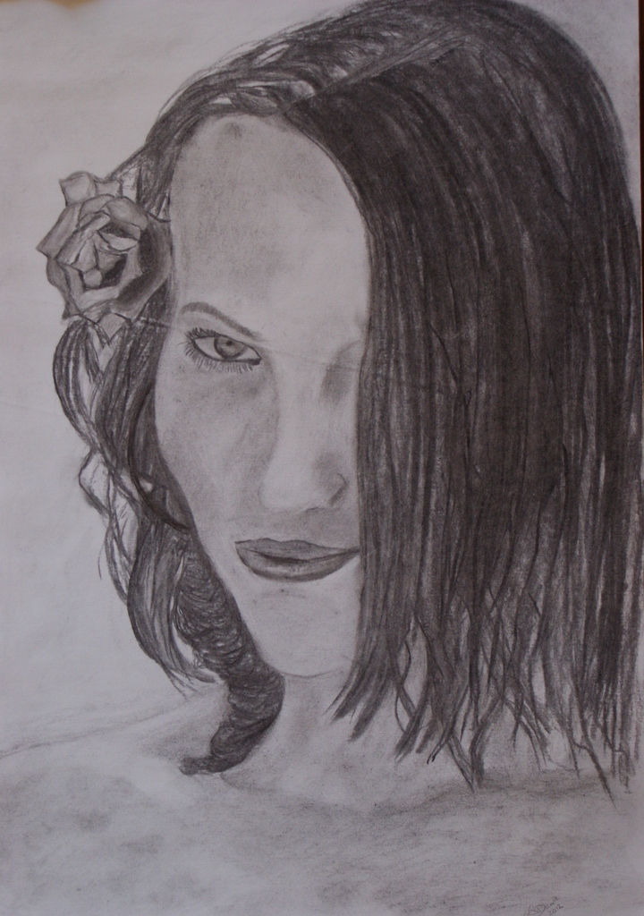 Vrouw Portret Gezicht Bloem Lady Houtskool Face Flower Charcoal Persoon Person