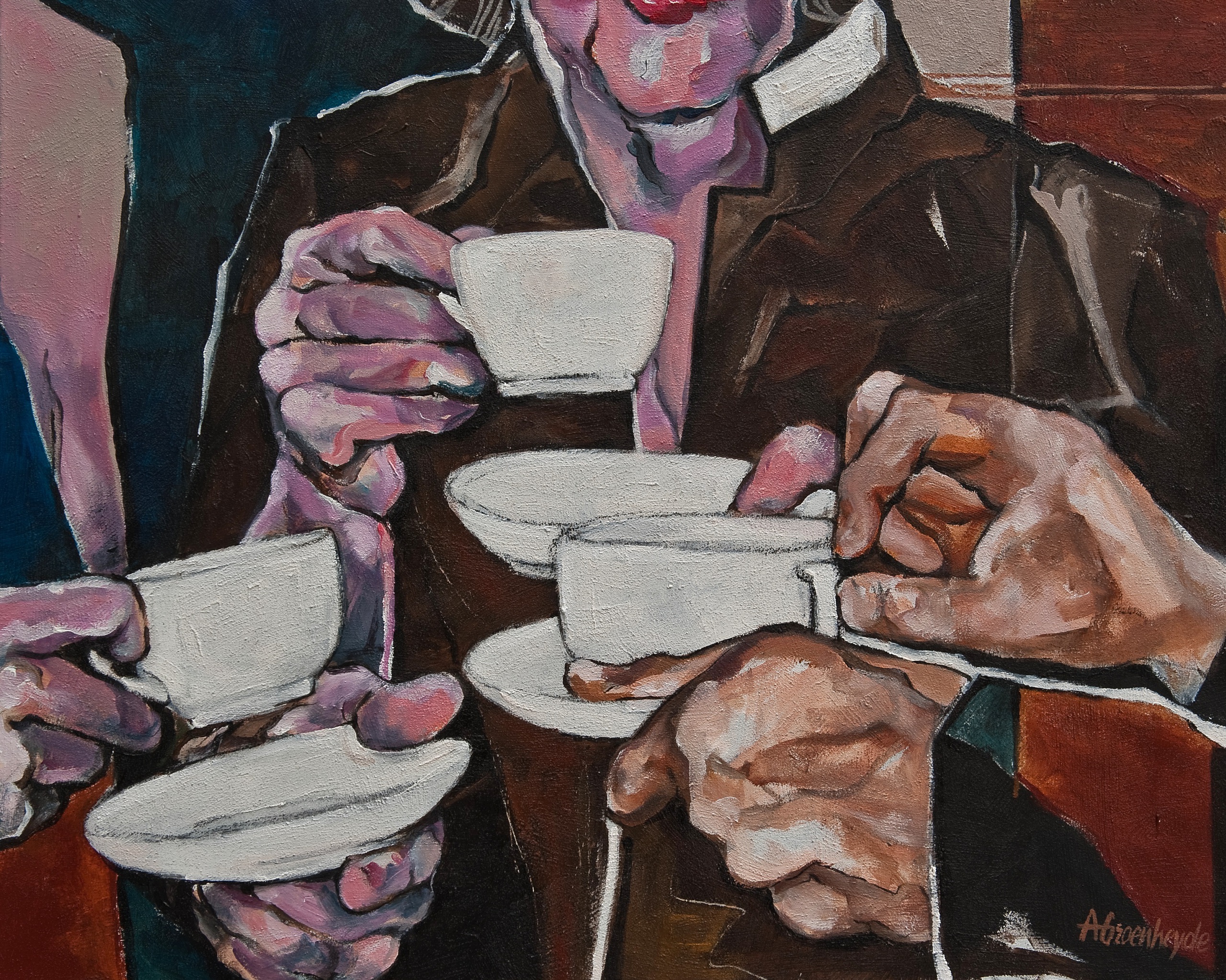 Theater Samen Handen Koffie Servies Kopjes Pauze Foyer Koffiekopjes Koffiedrinken Bakkie