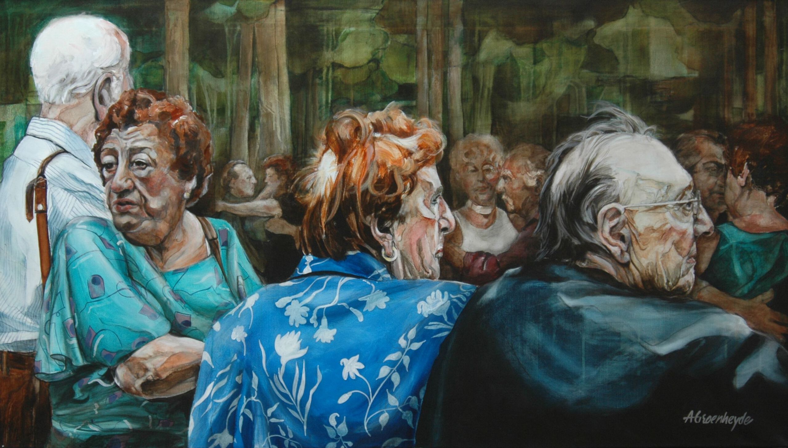 Albert Groenheyde (1939) studeerde aan de Koninklijke Academie voor Beeldende Kunsten te Den Haag. Daarna werkte hij als grafisch ontwerper. Pas de laatste jaren ontwikkelt hij zich als beeldend kunstenaar. Groenheyde is een scherp observator. Zijn stijl van schilderen is fors en krachtig, met subtiel lijngebruik. Soms massief, dan weer transparant. Zoals een musicus zijn instrument bespeelt. Zijn schilderijen zijn onontkoombaar. Ze zijn duidelijk aanwezig en vragen om aandacht.