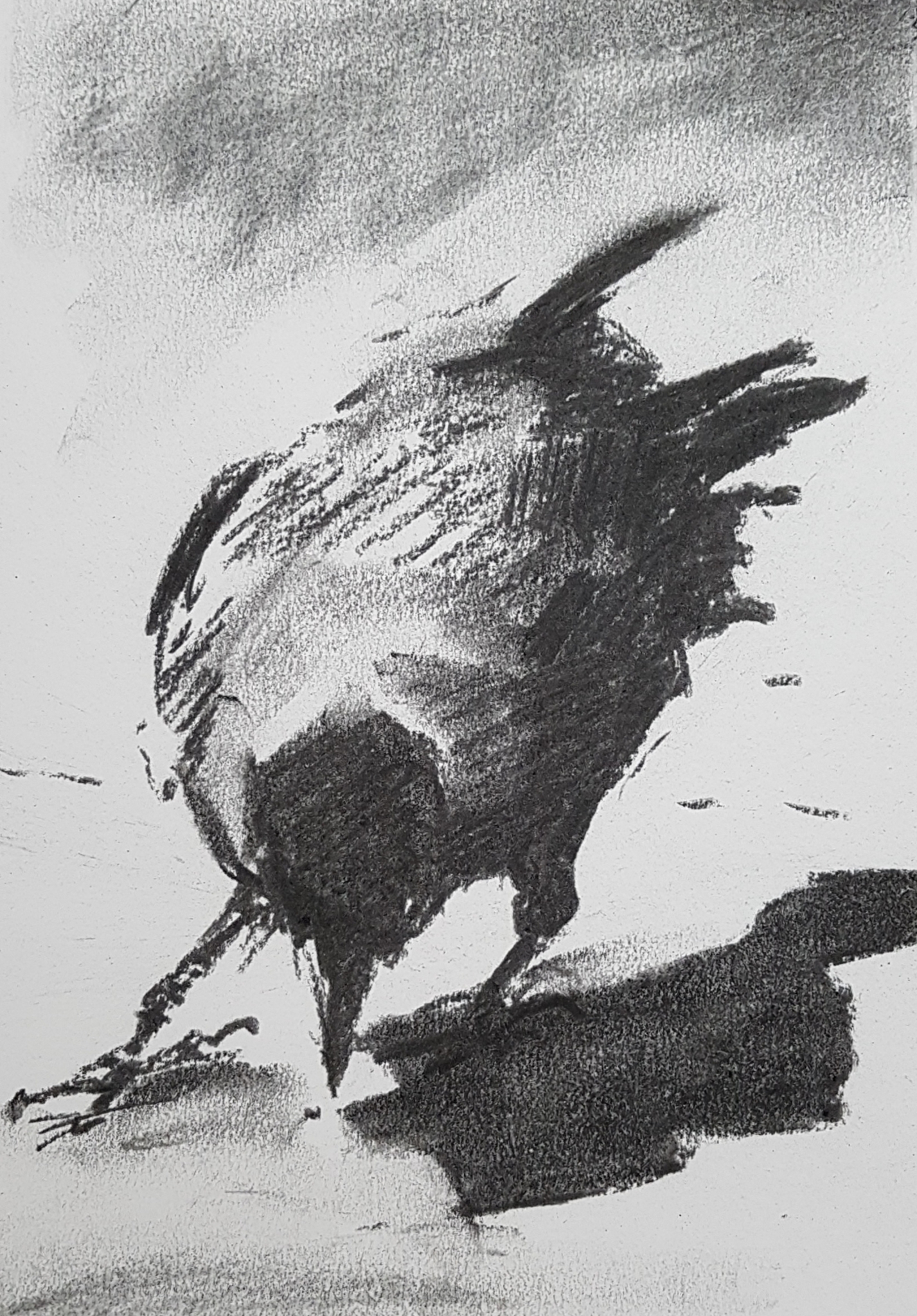 Zwart Vogel Tekening Houtskool Kauw Kauwtje Jackdaw Dohle