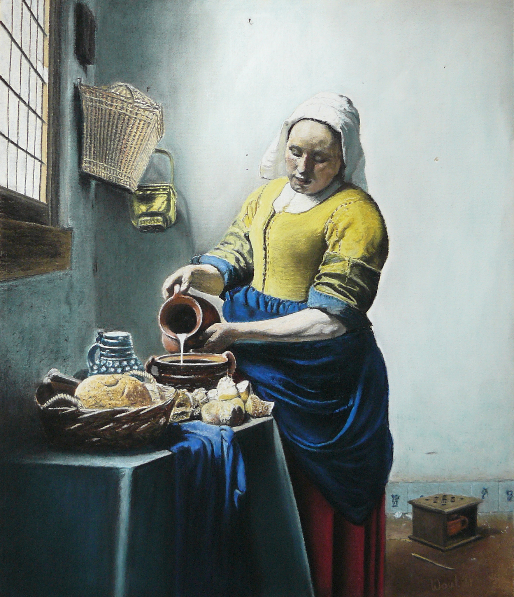 Het Melkmeisje van Vermeer, maar dan in pastel.