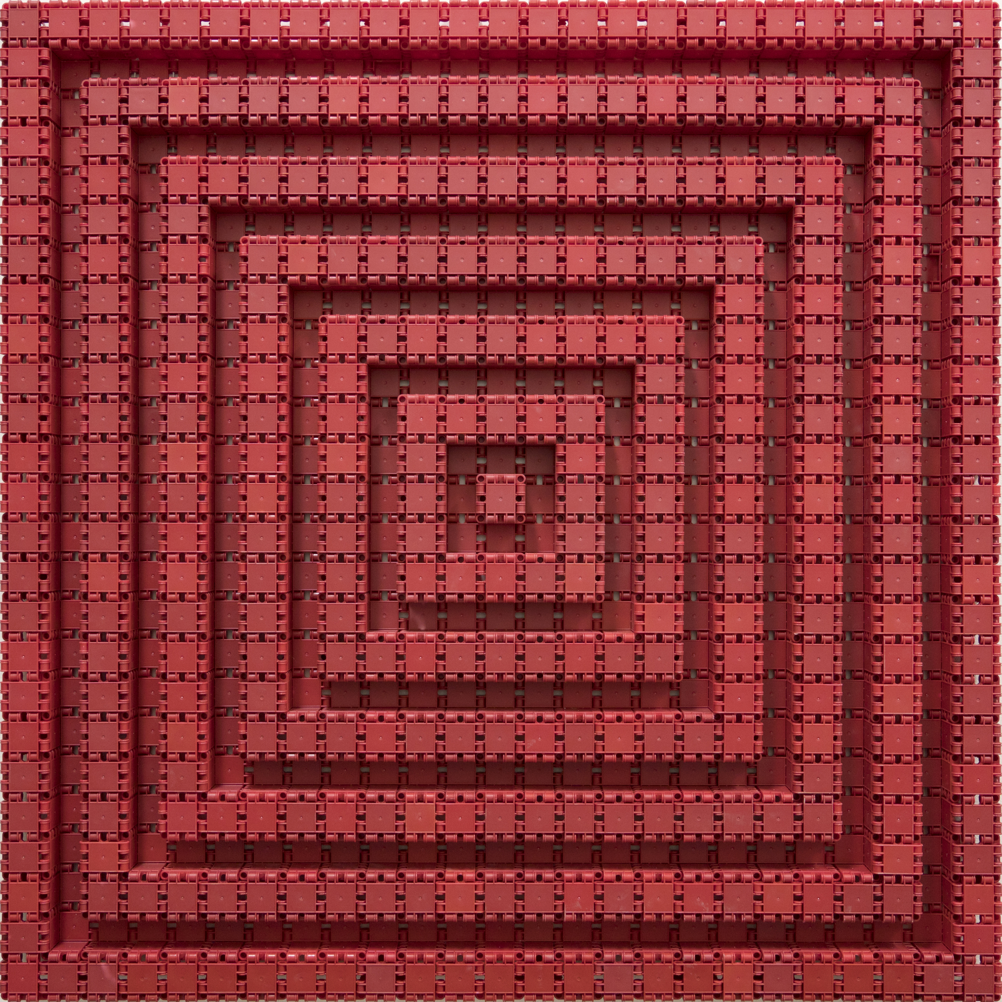 Tijdens de pandemie heeft Nico Kok veel gebruikt constructiespeelgoed verzameld bij kringloopwinkels en internet, waaronder "clics". In dit werk gebruikte hij alleen de rode clics: 1327 rode clics zijn gecombineerd tot een reliëf van 7 vierkanten maar ook 6 negatieve vierkanten. Elke clic is ook een vierkant. Clics zijn er alleen in rood, geel, groen, blauw, wit en zwart. Alleen rood wordt gebruikt in dit monochrome werk en het is nauwelijks herkenbaar als speelgoed. Het werk is uit elkaar te halen en op een andere manier weer in elkaar te zetten. Dit is niet de bedoeling, maar draagt bij aan de beleving van dit werk. Het werk reflecteert op de beweging van de Nul-groep (Jan Schoonhoven, Armando) en op de minimal artist Frank Stella. Thema's van Nico Kok zoals: vierkant, wat kan er met de vorm gedaan worden, gebruik van materiaaleigenschappen, gebruik van monochrome kleur, contrast positief / negatief, etc. komen terug in dit werk. Het werk is op de achterkant gesigneerd.