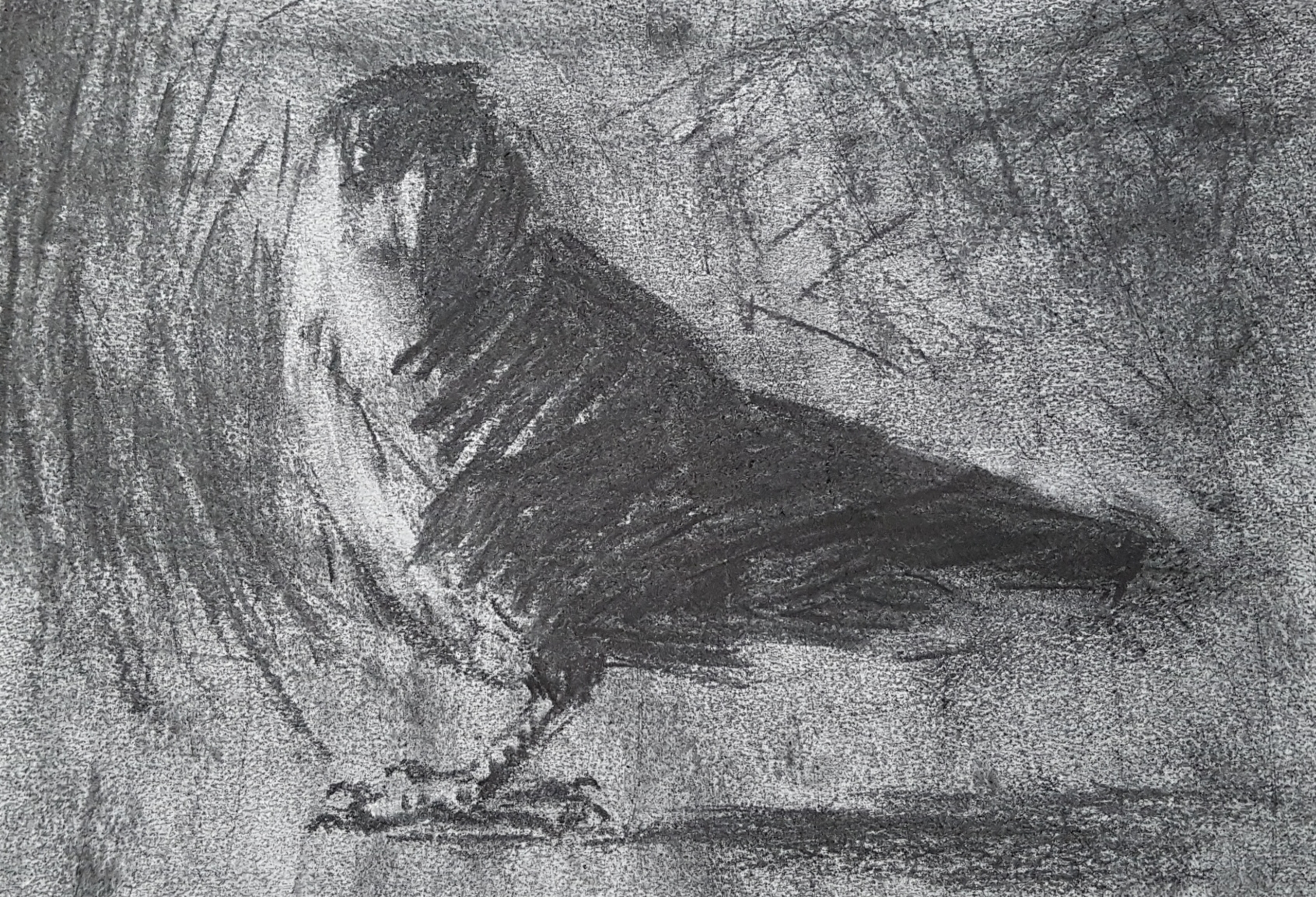 Zwart Vogel Tekening Houtskool Kauw Kauwtje Jackdaw Corvus Monedula Dohle
