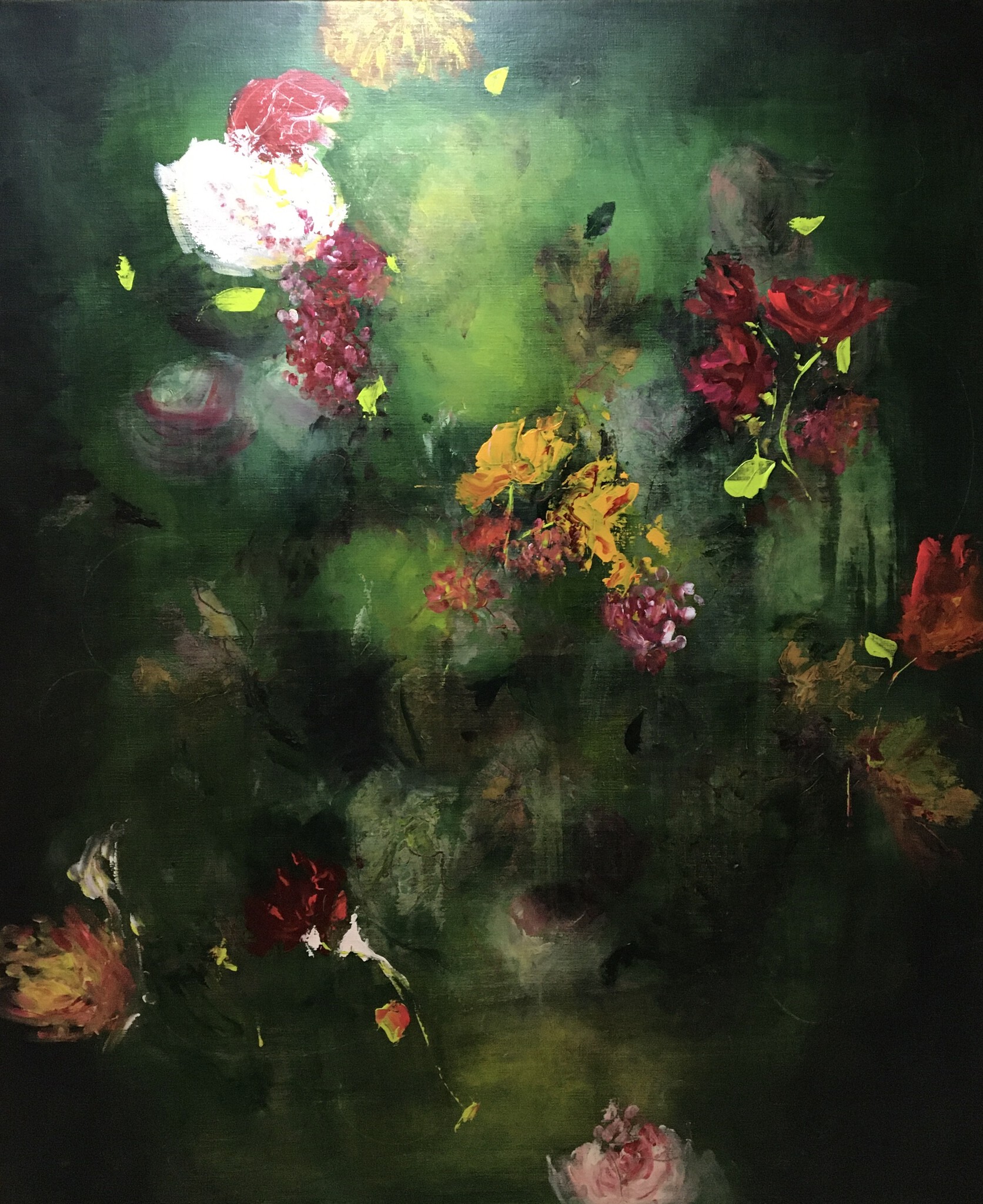 Wit Rood Geel Acryl Groen Bloemen Groot Romantisch Nostalgisch