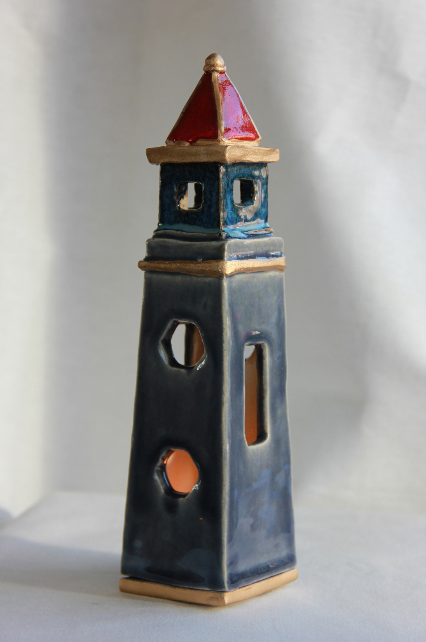 Aardewerk en goudverf Met waxinelichtje erin mooi schijnsel door de raampjes
