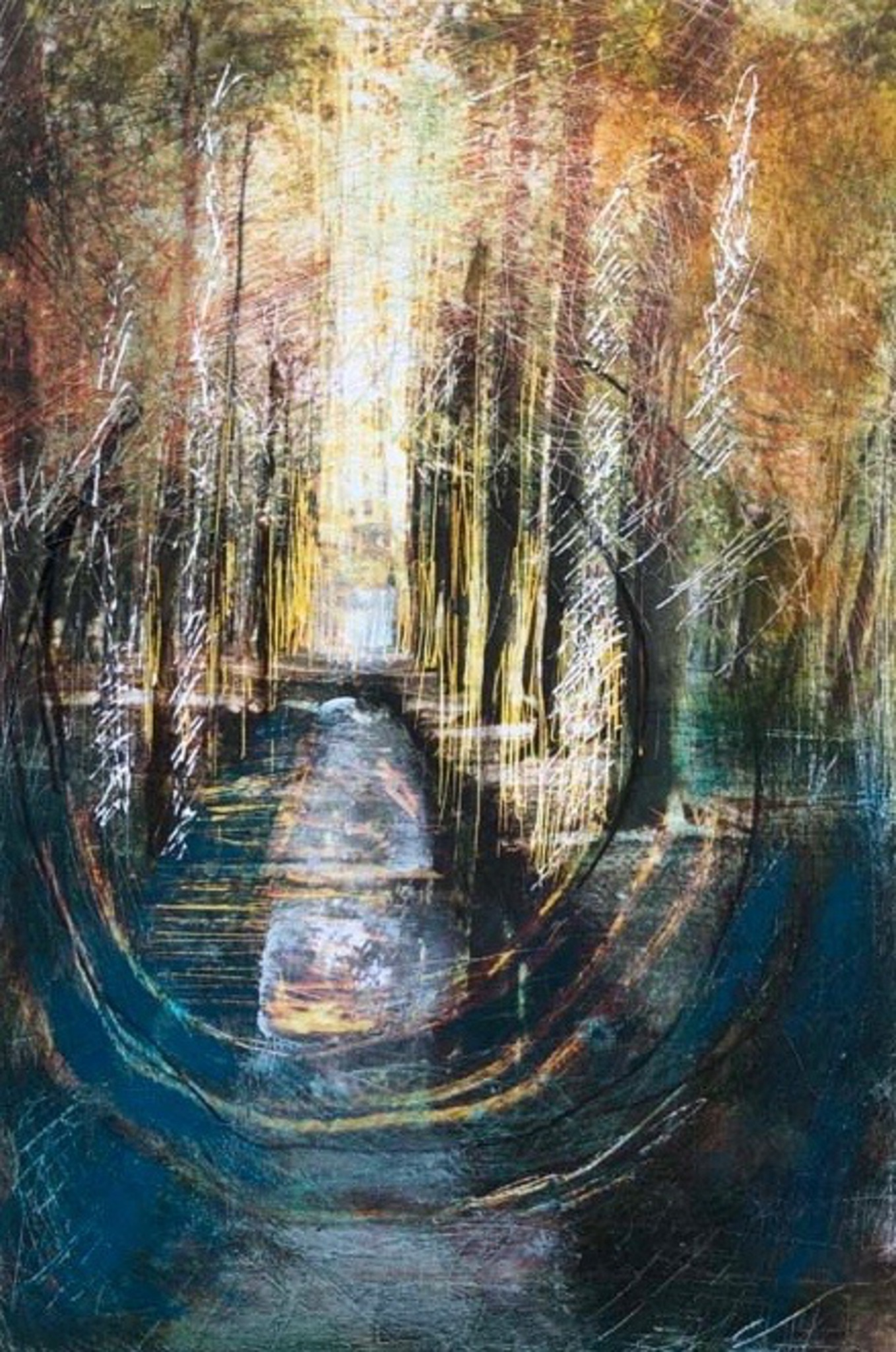 In mijn werk maak ik gebruik van gemengde technieken en werk ik graag in lagen, al dan niet gebruikmakend van textuur. Ik houd ervan om onderlagen weer zichtbaar te maken en weer nieuwe lagen toe te voegen. Al doende groeit het beeld onder mij handen, letterlijk, omdat ik graag met mijn handen werk om te bereiken wat ik wil.