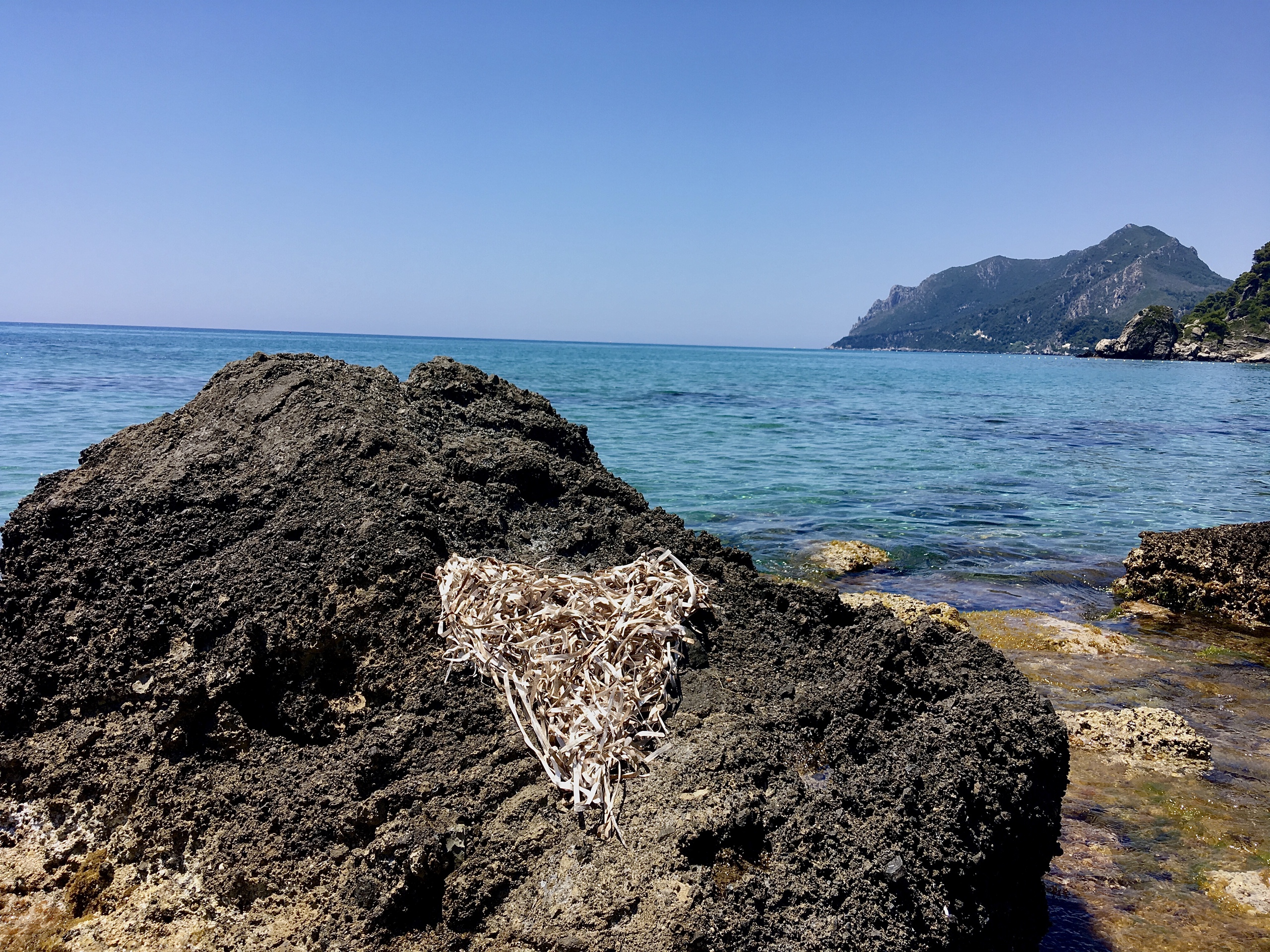 In de natuur leg ik harten neer op een plek die mij aanspreekt, met materiaal wat ik ter plekke vind. Ik hoop dat mensen een ontmoeting hebben met het hart en het symbool van het hart. Volgens mij wordt hierdoor die plek alleen maar mooier. Dit hart het ik op Corfu gelegd.