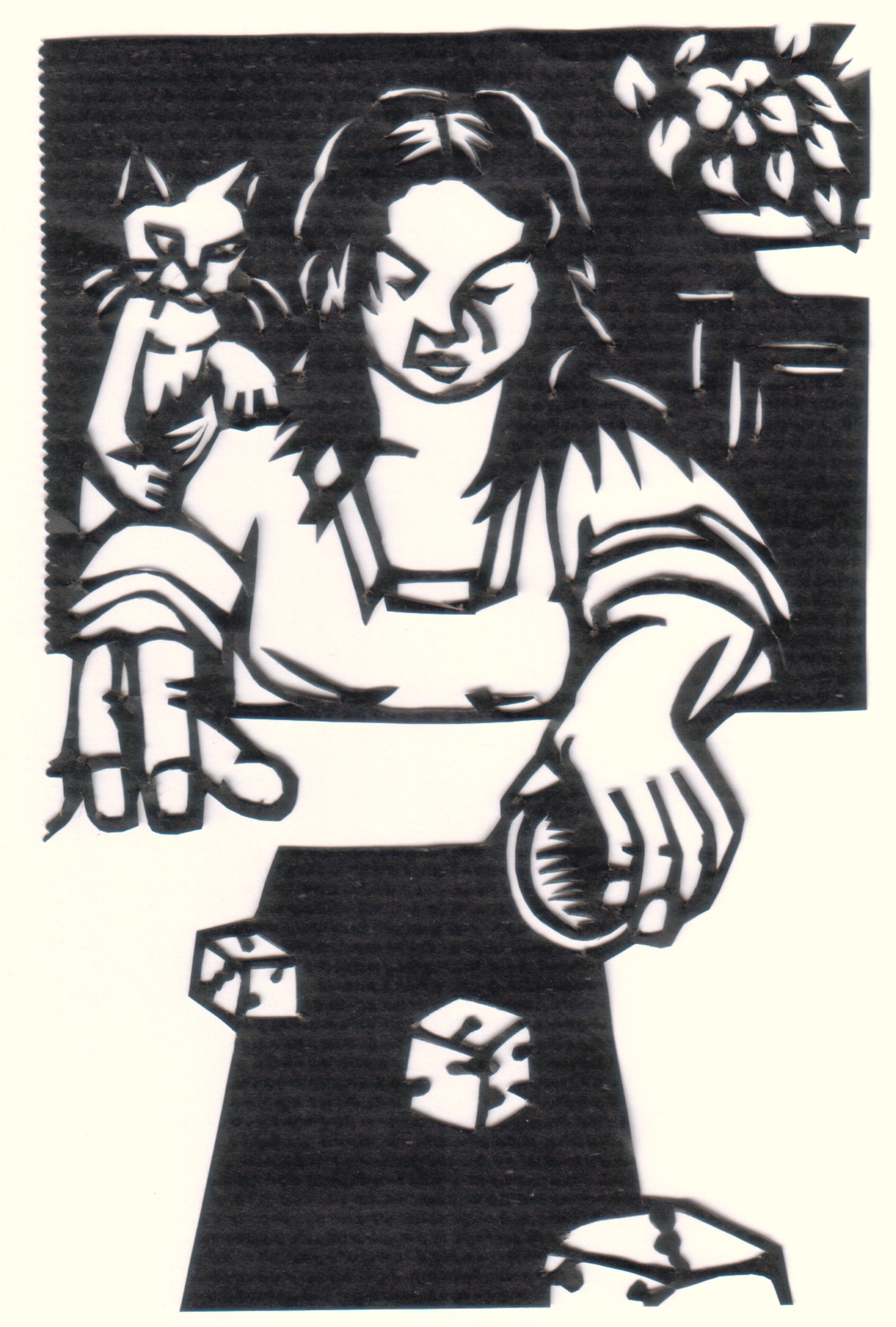 Dobbelsteen Kat Vrouw Yahtzee Poker Knipkunst Knipsel Knipwerk Papierknipkunst Paper Cutout Decoupage Scherenschnitt