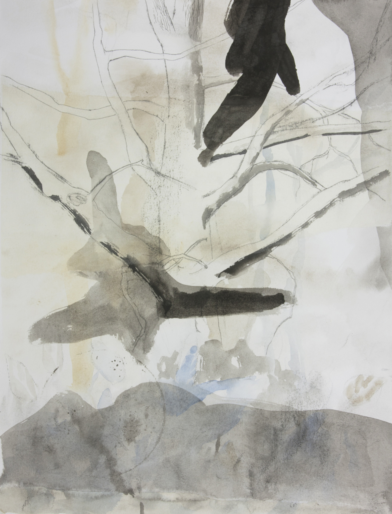 Marije Bouman (1971), onderzoekt de ruimte die ontstaat tijdens het werkproces door het gebruik van landschappelijke elementen en ongrijpbare vormen.