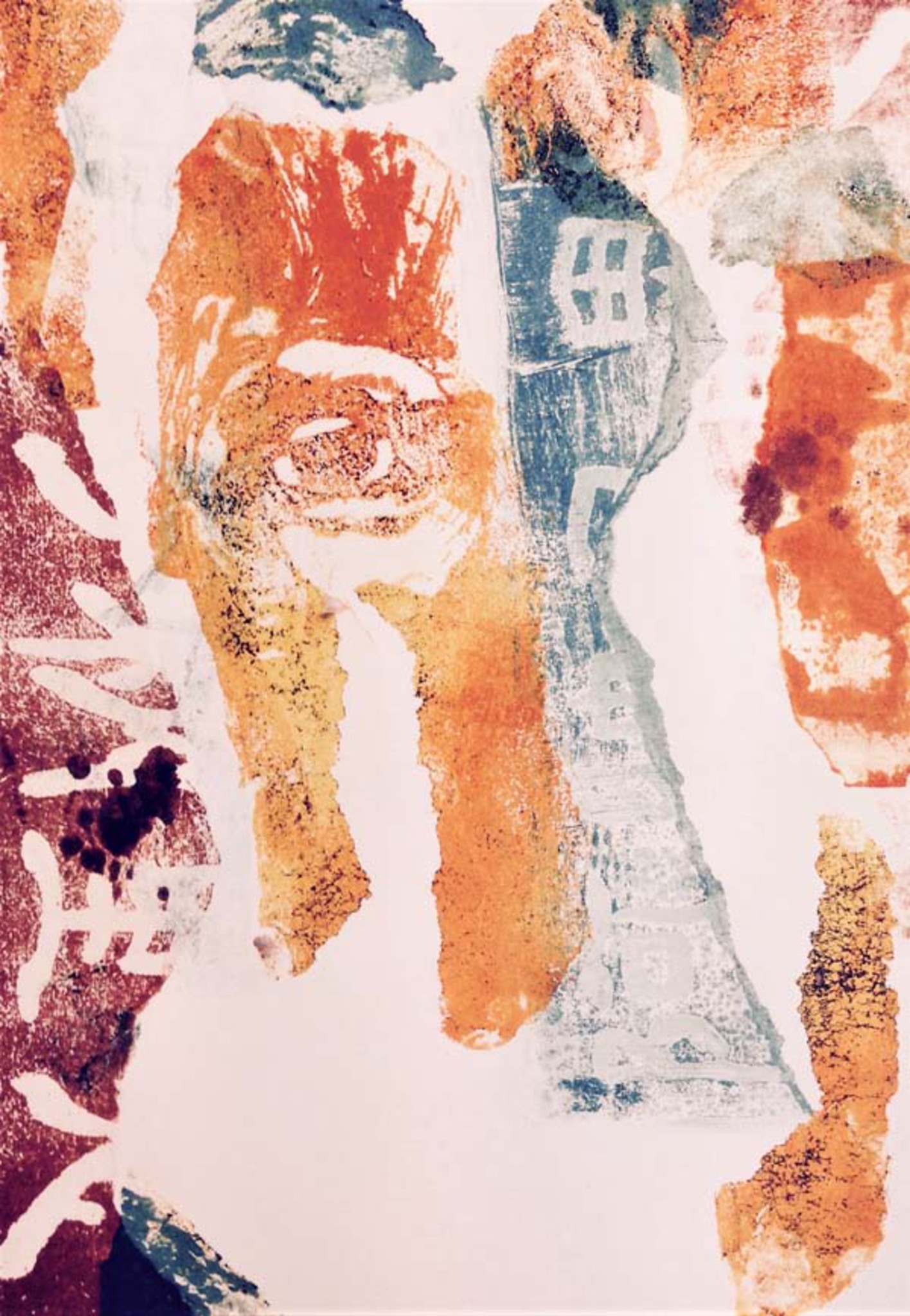 Afdruk met Arabische gom en olieverf op aquarelpapier.