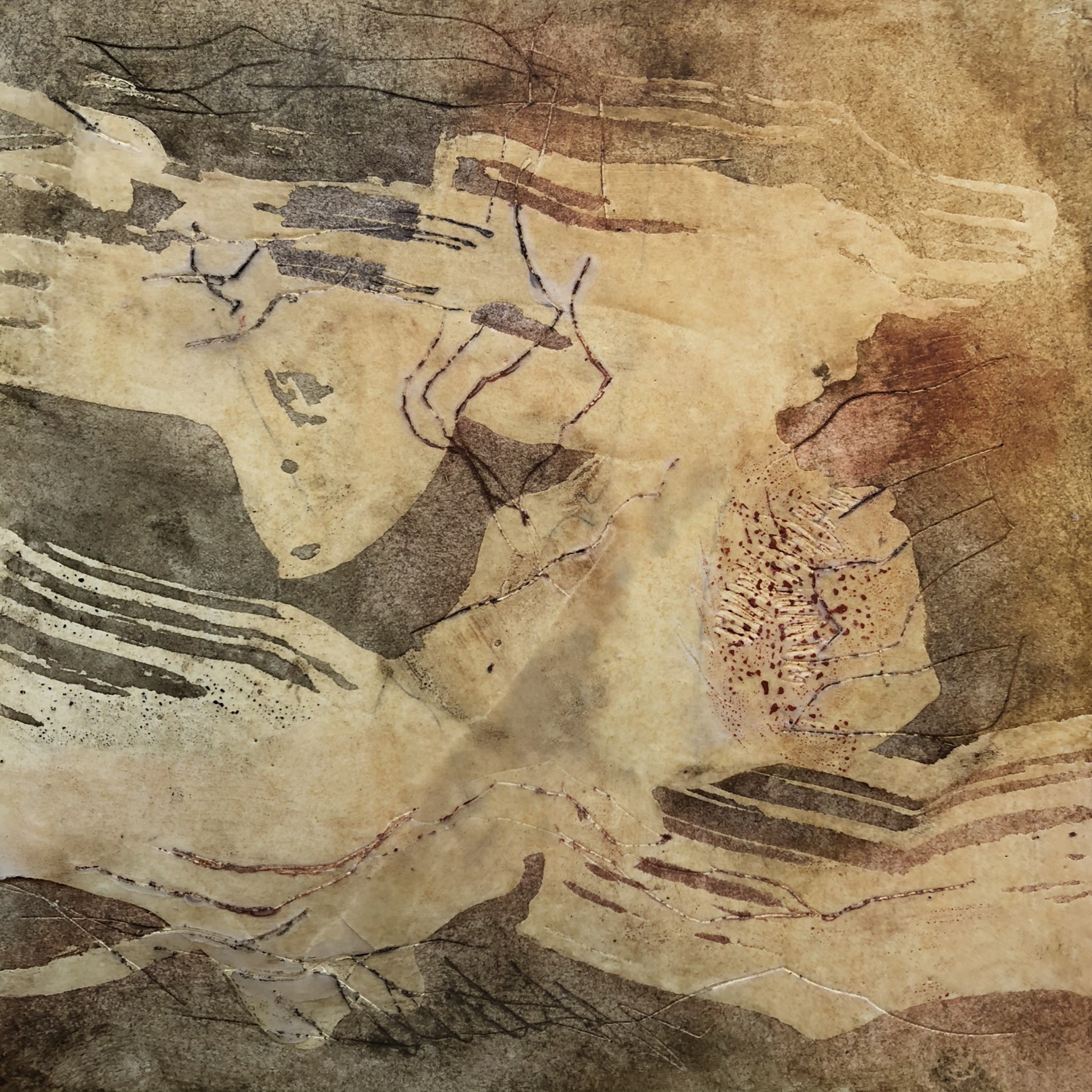 In mijn werk maak ik gebruik van gemengde technieken en werk ik graag in lagen, al dan niet gebruikmakend van textuur. Ik houd ervan om onderlagen weer zichtbaar te maken en weer nieuwe lagen toe te voegen. Al doende groeit het beeld onder mij handen, letterlijk, omdat ik graag met mijn handen werk om te bereiken wat ik wil.