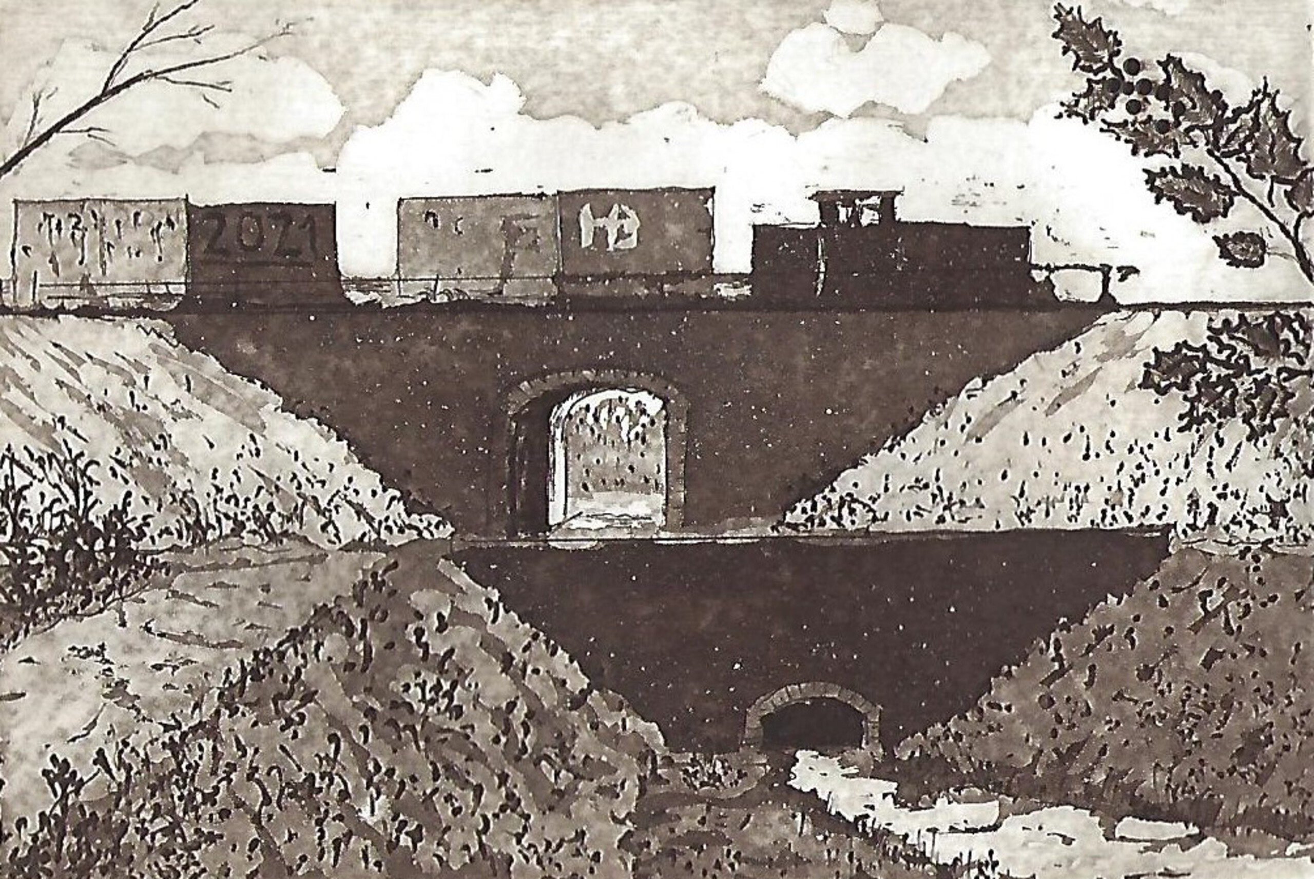 In 2020 is dit de bij de kerstwens behorende ets, een trein die nieuwe hoop mee brengt en gesignaleerd wordt op een viaduct in Reuver, waar een weg onderdoor gaat en daaronder een riviertje ( de Schellekesbeek) zijn weg naar de Maas aflegt.