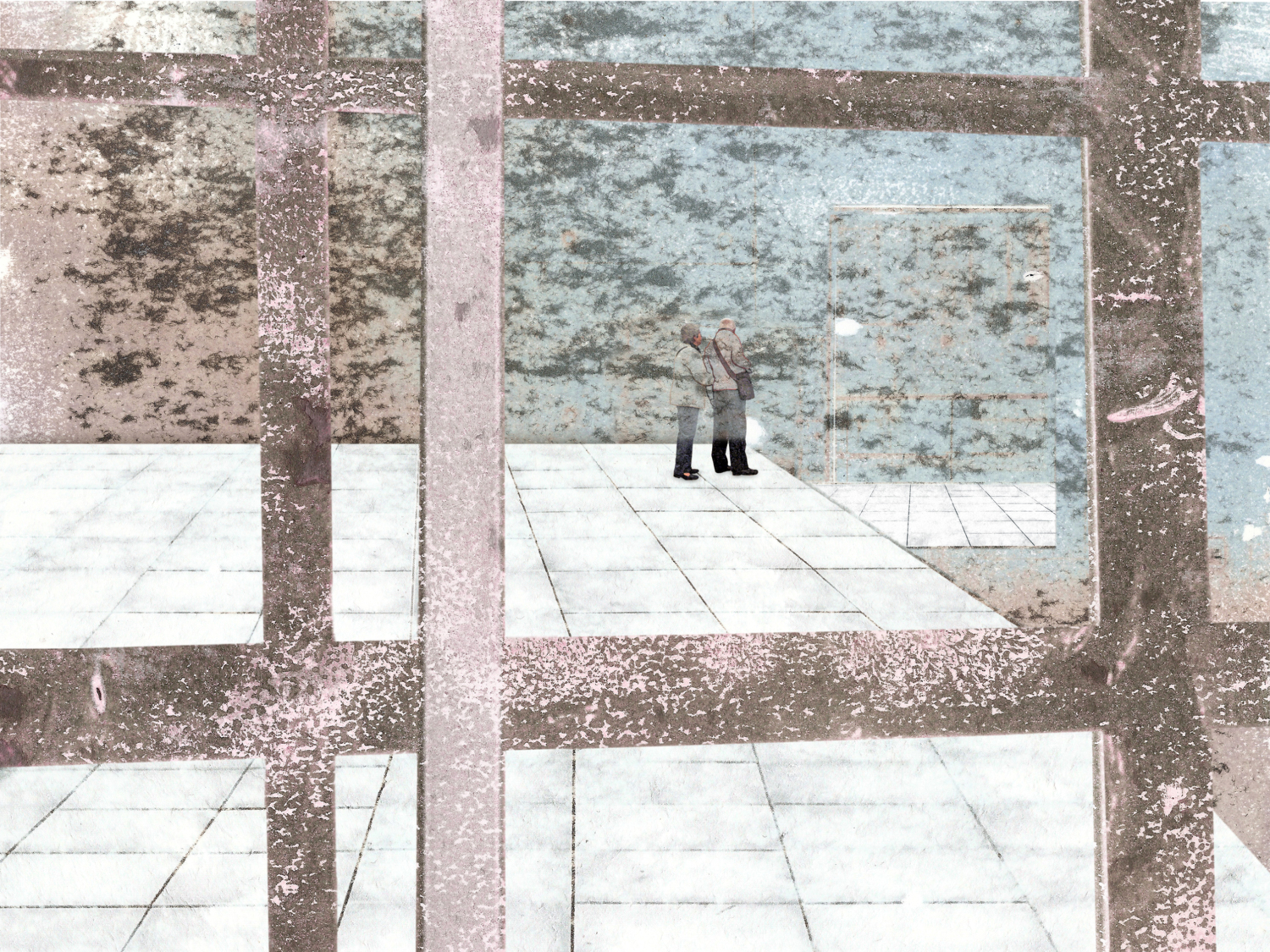 Figuratieve en abstraherende gouaches en montages. Onderwerpen: ruimte in de ruimste zin van het woord.