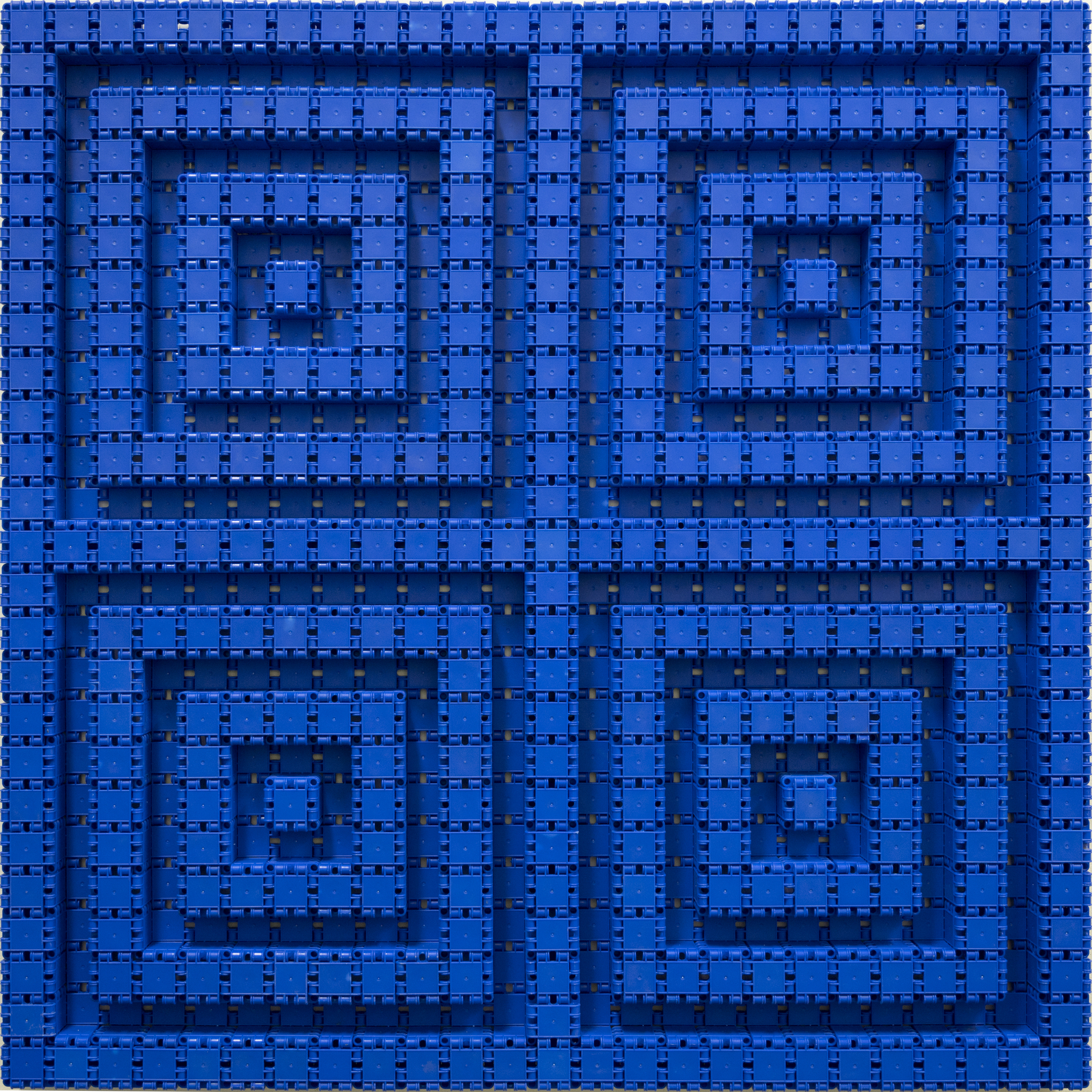 Tijdens de pandemie heeft Nico Kok veel gebruikt constructiespeelgoed verzameld bij kringloopwinkels en internet, waaronder "clics". In dit werk gebruikte hij alleen de blauwe clics: Zo'n 1300 blauwe clics zijn gecombineerd tot een reliëf van zeventien vierkanten. Maar in dit werk zie je ook 12 "negatieve" vierkanten en 4 kubussen. Elke clic is ook een vierkant. Clics zijn er alleen in rood, geel, groen, blauw, wit en zwart. Het werk is uit elkaar te halen en op een andere manier weer in elkaar te zetten. Dit is niet de bedoeling, maar draagt bij aan de beleving van dit werk. Het werk reflecteert op de beweging van de Nul-groep (Jan Schoonhoven, Armando) en op de minimal artist Frank Stella. Thema's van Nico Kok zoals: vierkant, kubus, wat kan er met de vorm gedaan worden, gebruik van materiaaleigenschappen, gebruik van monochrome kleur, contrast positief / negatief, etc., Komen terug in dit werk. Het werk is op de achterkant gesigneerd.