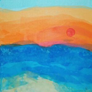 Mijn naam is Ellen van der Kooij, (hobby) kunstschilder. Geboren in 1952 in Hallum (Friesland). Op de lagere school vond ik tekenen al erg leuk en de meester stimuleerde dat. Het schilderen kwam pas echt in beeld in 2004, toen ik als werkervaringsplek mocht werken met mensen met een beperking. Ik kreeg zin om zelf ook te gaan schilderen. Mijn eerste werken zijn realistisch. Ik heb 3 seizoenen een cursus gedaan en daar andere technieken geleerd. In het voorjaar van 2020 raakte ik door corona met mezelf in de knoop en kon ik niets meer. Met psychische hulp ging de deur op een kier en kon ik weer schilderen, nu vanuit mijn gevoel.