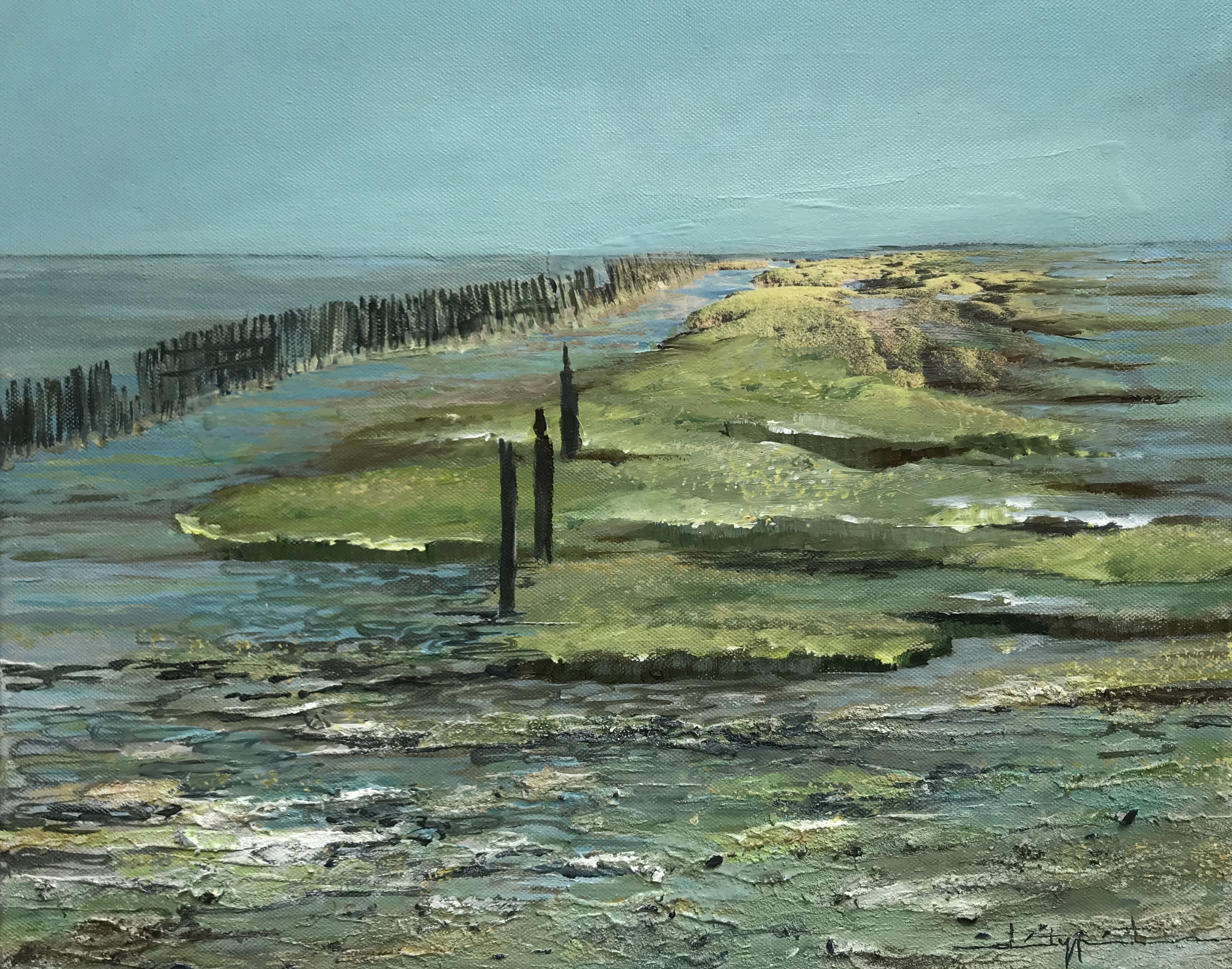 Acryl Groen Mixed Media Wad Fryslân Moddergat