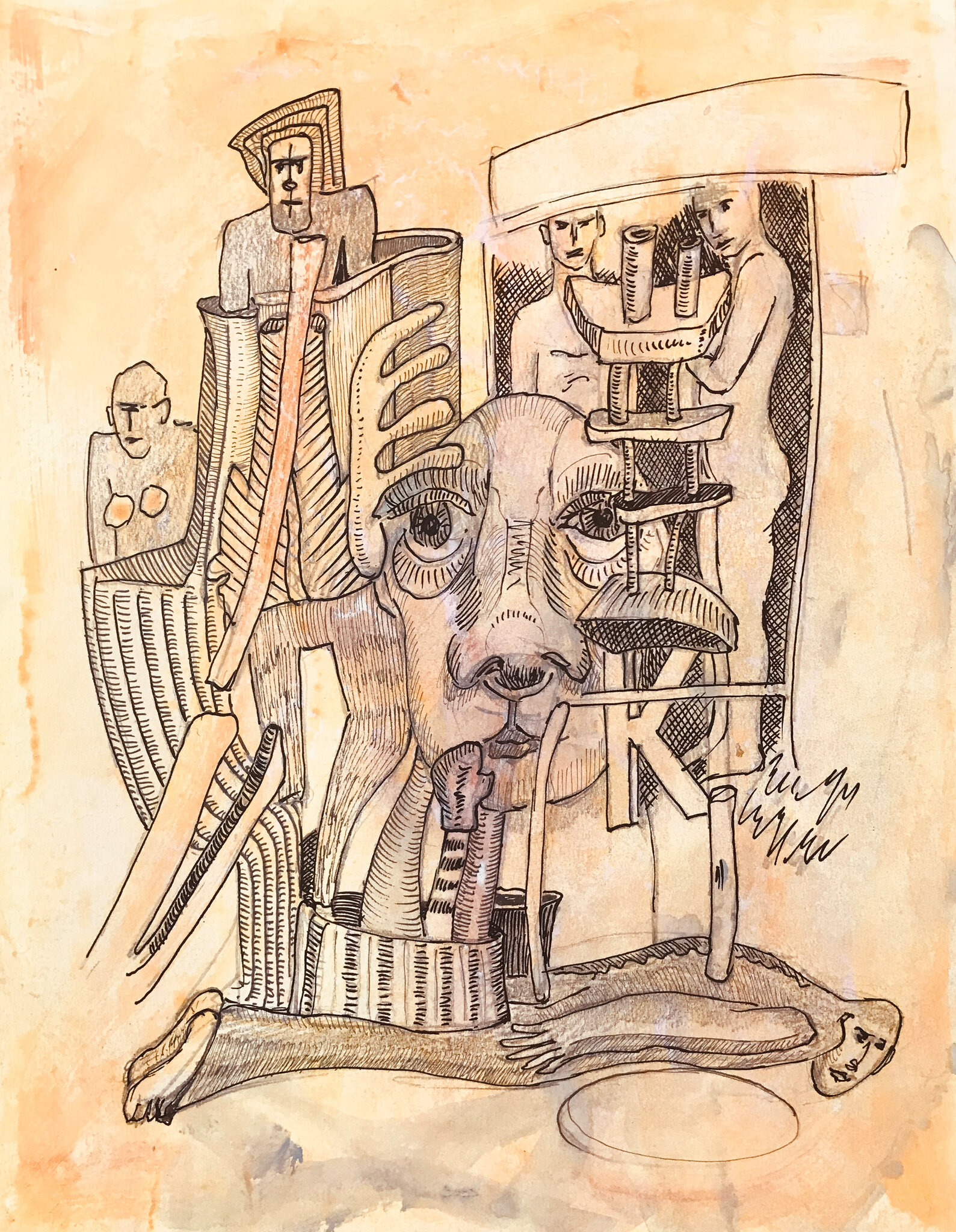 uit serie: JOURNAAL VAN NIET GEBEURDE ZAKEN, pentekeningen op geprepareerd papier, gescheurde randen