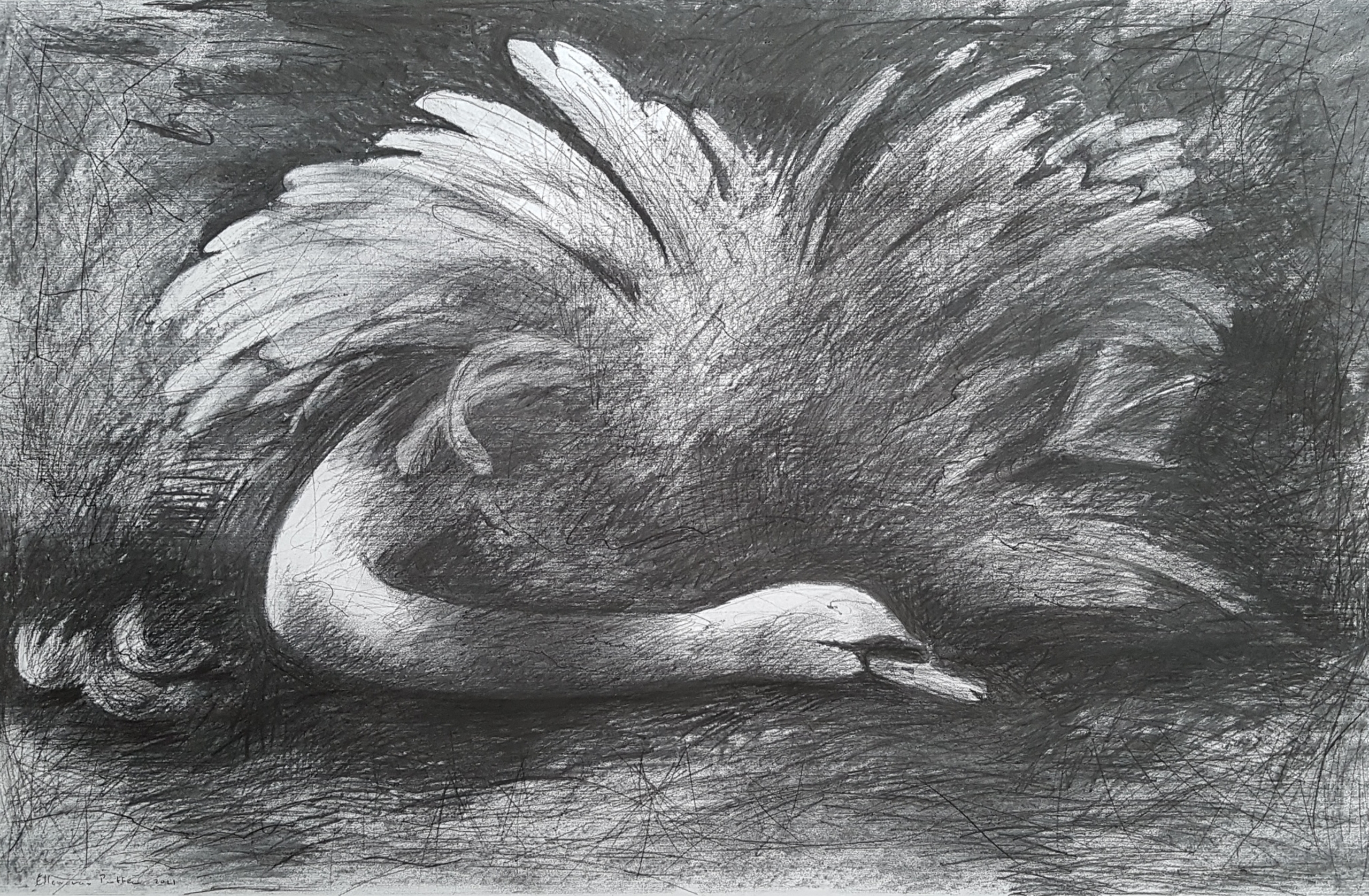 Stervende zwaan in houtskool