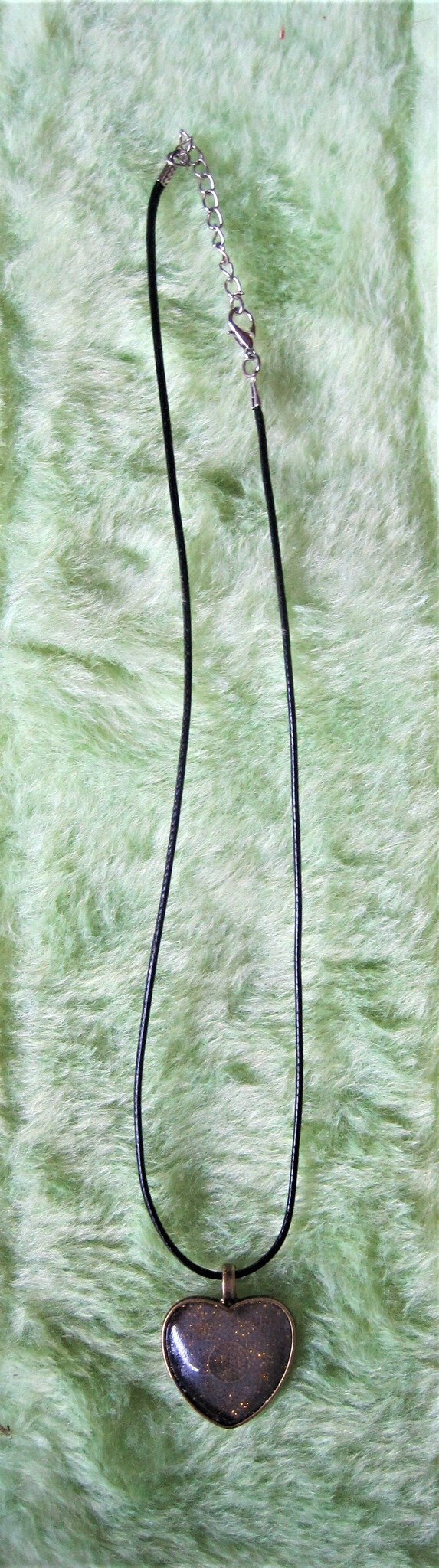 Ketting hart brons met goudglitters en cabochontegel. Elke hanger kan worden besteld met een leren veter en/of zilverkleurige ketting nikkelvrij.