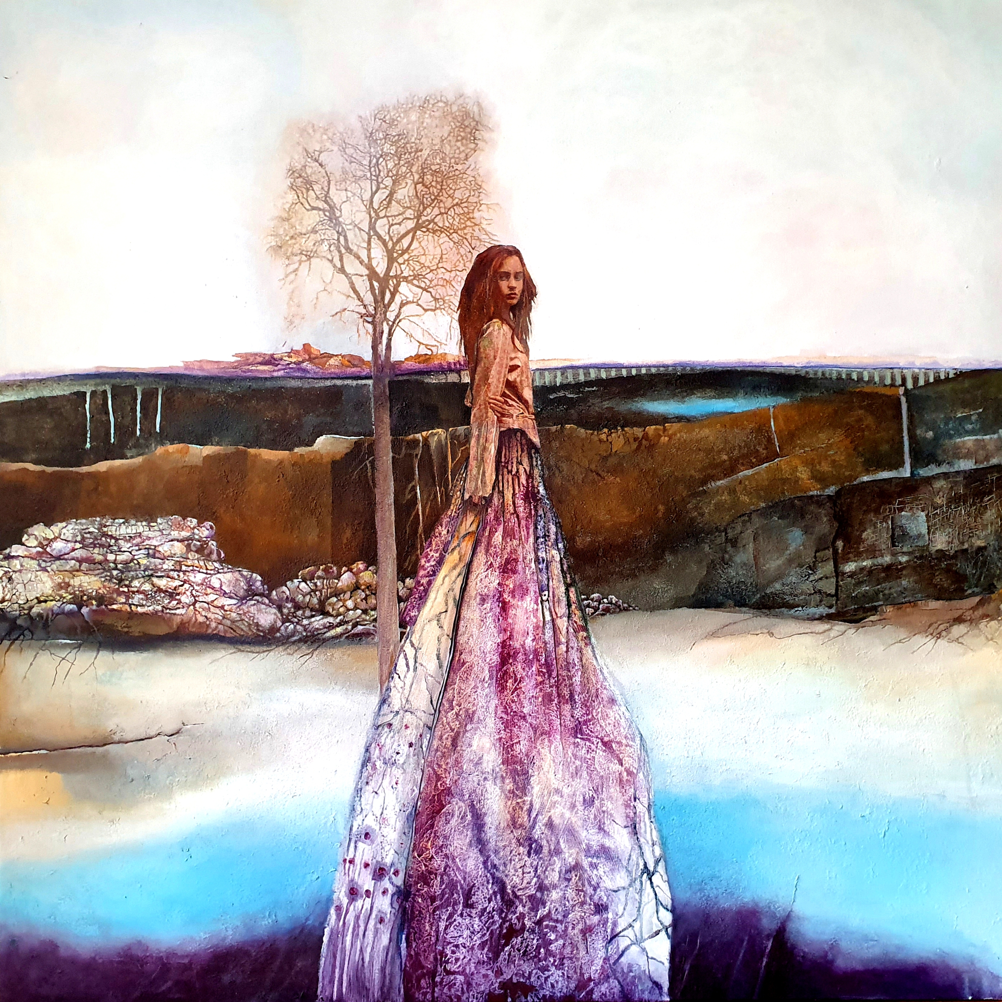 Landschap Blauw Paars Vrouw Kleurrijk Figuur Sprookje Fantasie