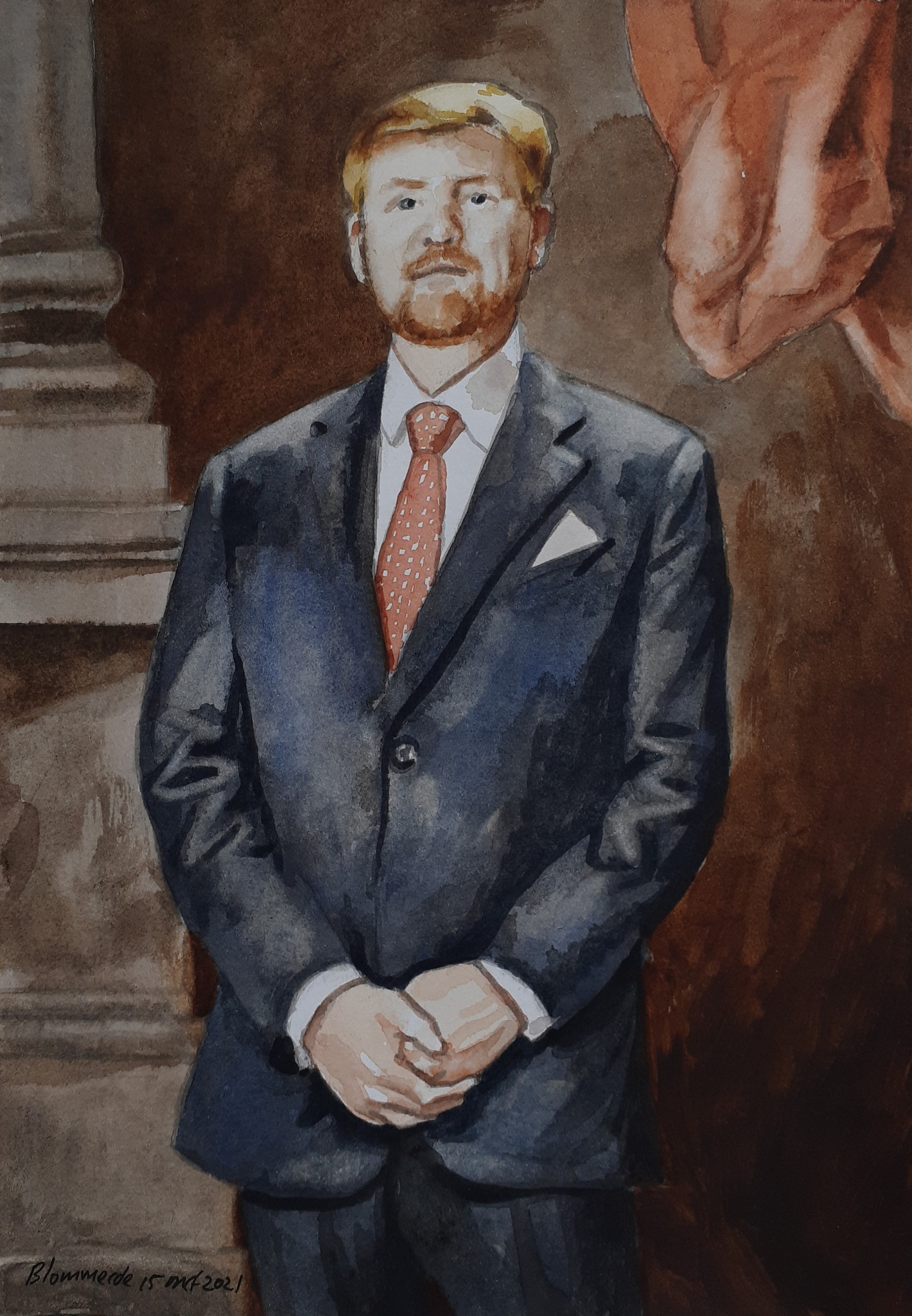 Realistisch Figuratief Portret Koning Willem-alexander Aquarel