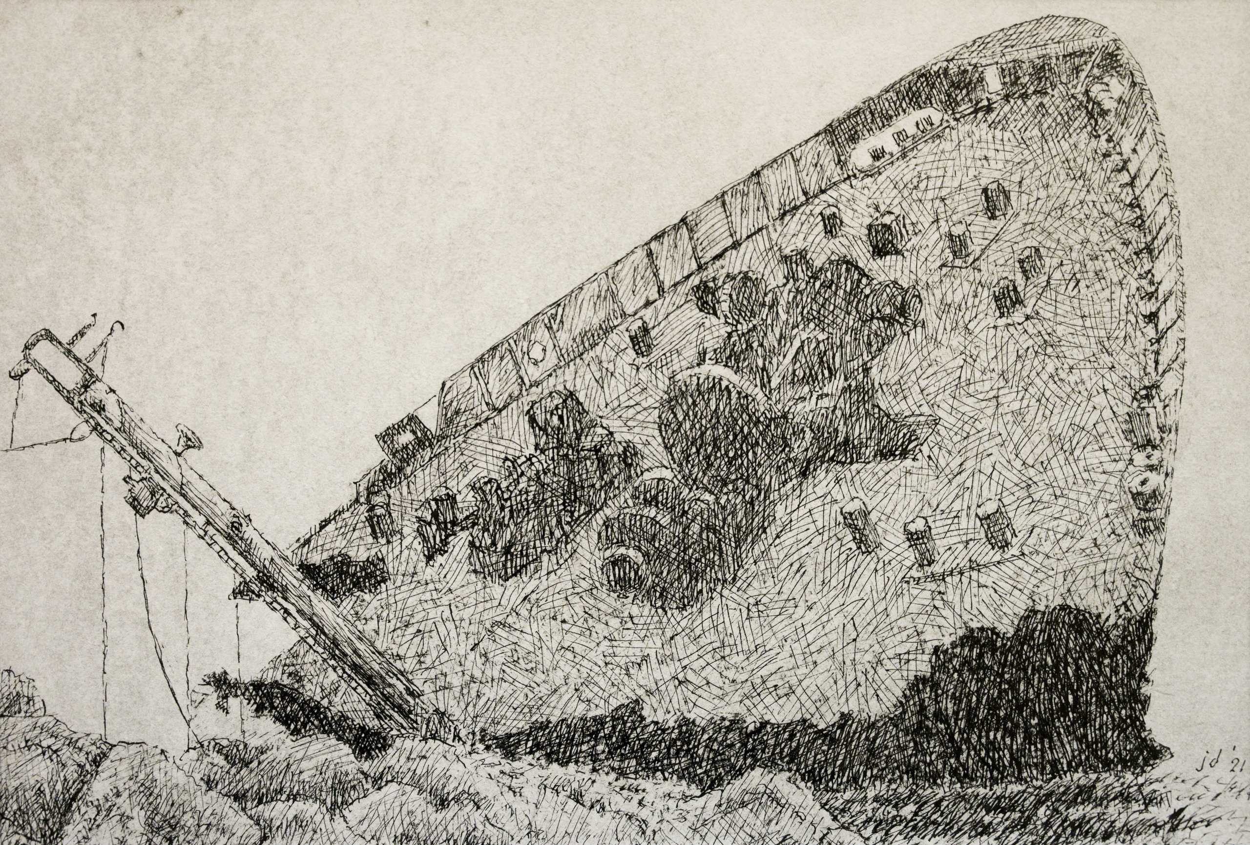 Wit Grijs Zwart Abstraherend Inkt Schuren Porto 1985 Uitgeest Arceren Shipwreck Scheepswrak Voordek Oostindische-inkt Jandeckwitz Jan-deckwiz Frontdeck
