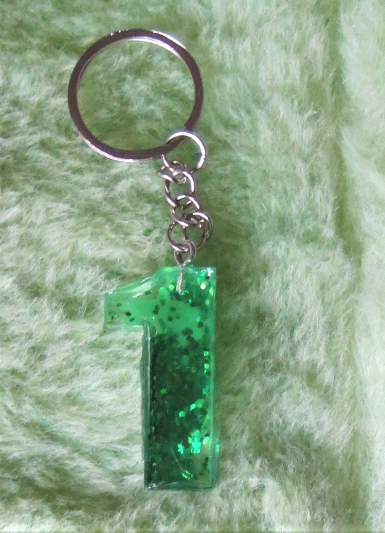 Sleutelhanger nr. 1 groen. Alle nrs zijn verkrijgbaar. Kleur hanger in zilver of goud. Nrs zijn ook zonder hanger los te bestellen.