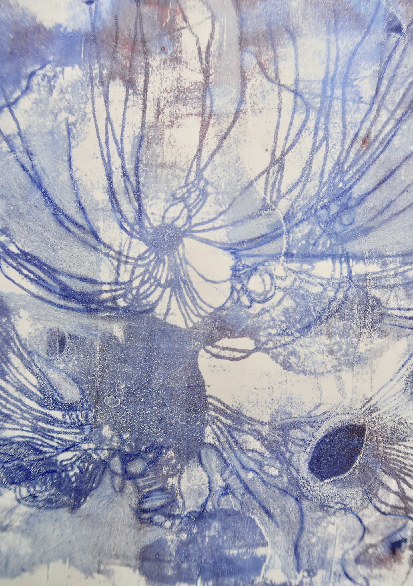 Wit Blauw Bruin Papier Op Natuur Vorm Monotype