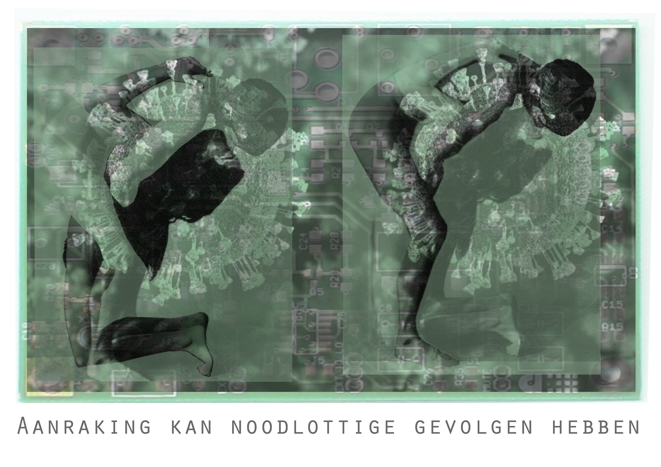 Digitale collage naar aanleiding van de coronna-lockdown voor de expositie "humor helpt"