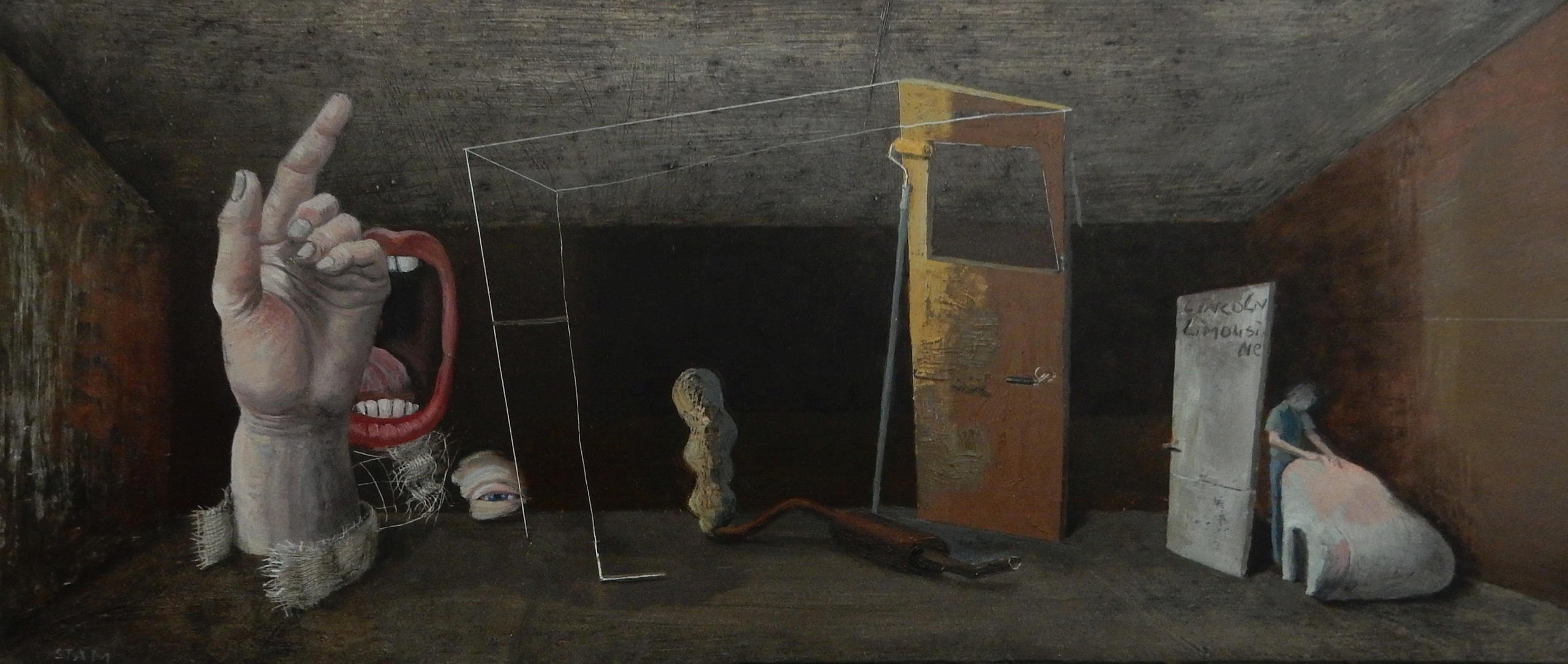 In een gelaagde en weelderige techniek biedt Arthur Stam (Delft 1953) werken met realistische, romantische en surrealistische elementen. De gemengde technieken en schilderijen zijn figuratief en een nieuwe variant op het 'genrestuk', waarbij de bezige mens in zijn alledaagse omgeving wordt verbeeld. Het aantal onderwerpen bij Arthur is gevarieerd, maar toch zijn er steeds terugkerende thema's: een mens in zijn werkplaats, decorbouwers achter het toneel, keukenafval, een tuinder in een volkstuin.