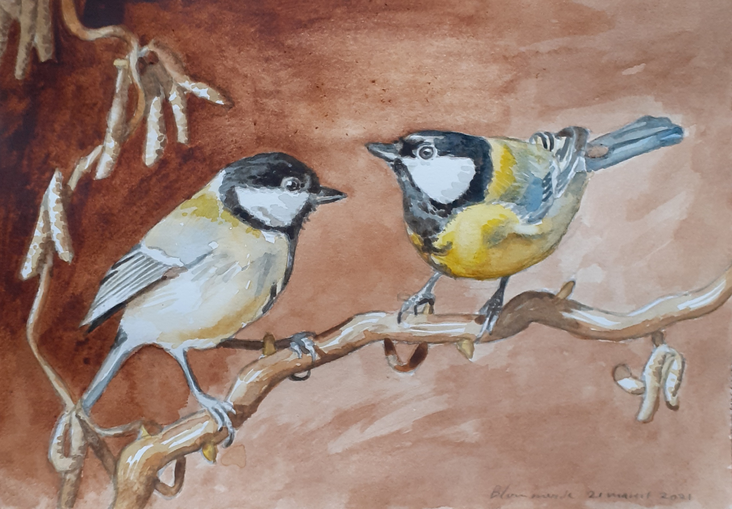 Figuratief Vogel Dier Aquarel Realistisch Koolmees