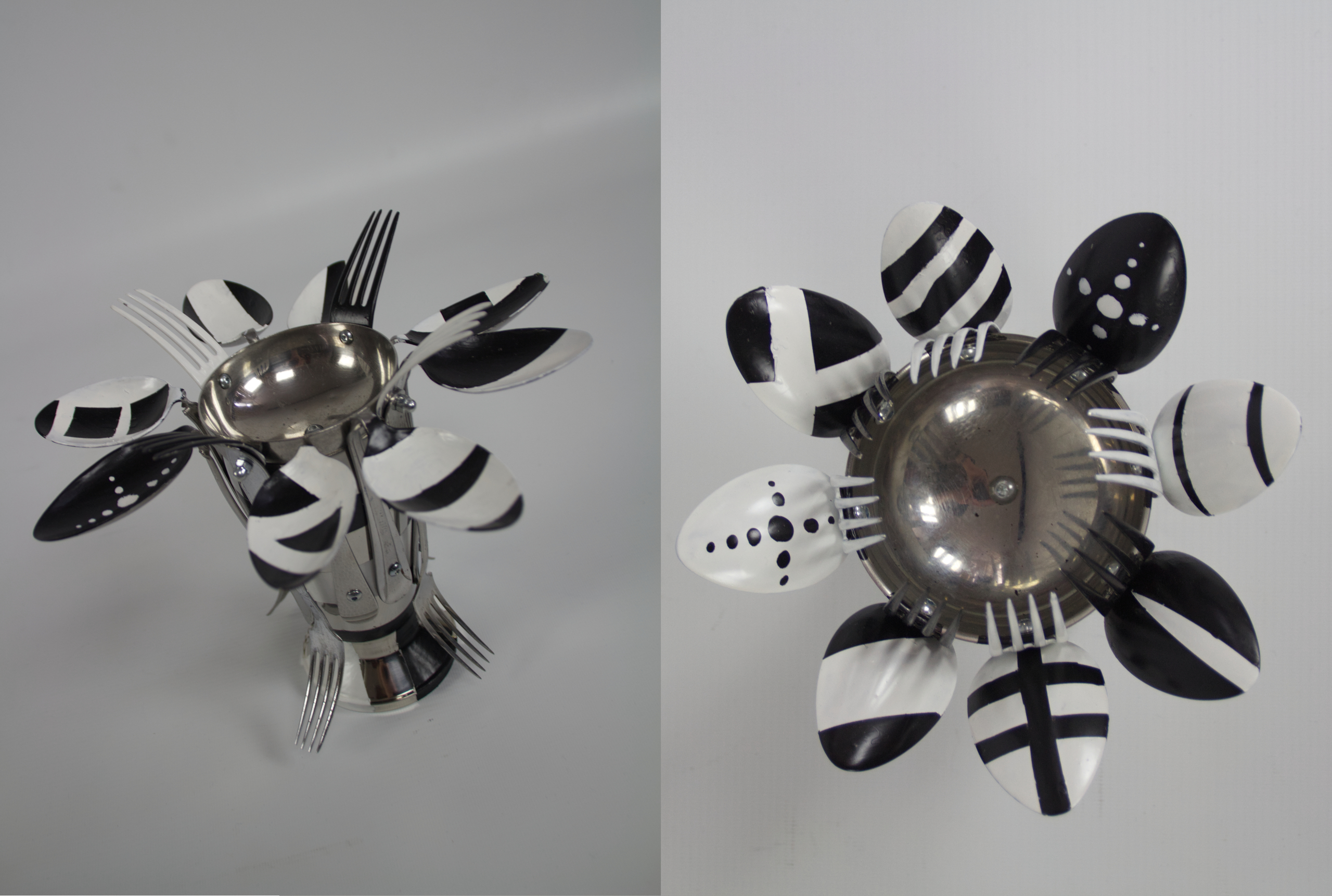 Kaarsenstaandaard van gebruikte lepels en vorken