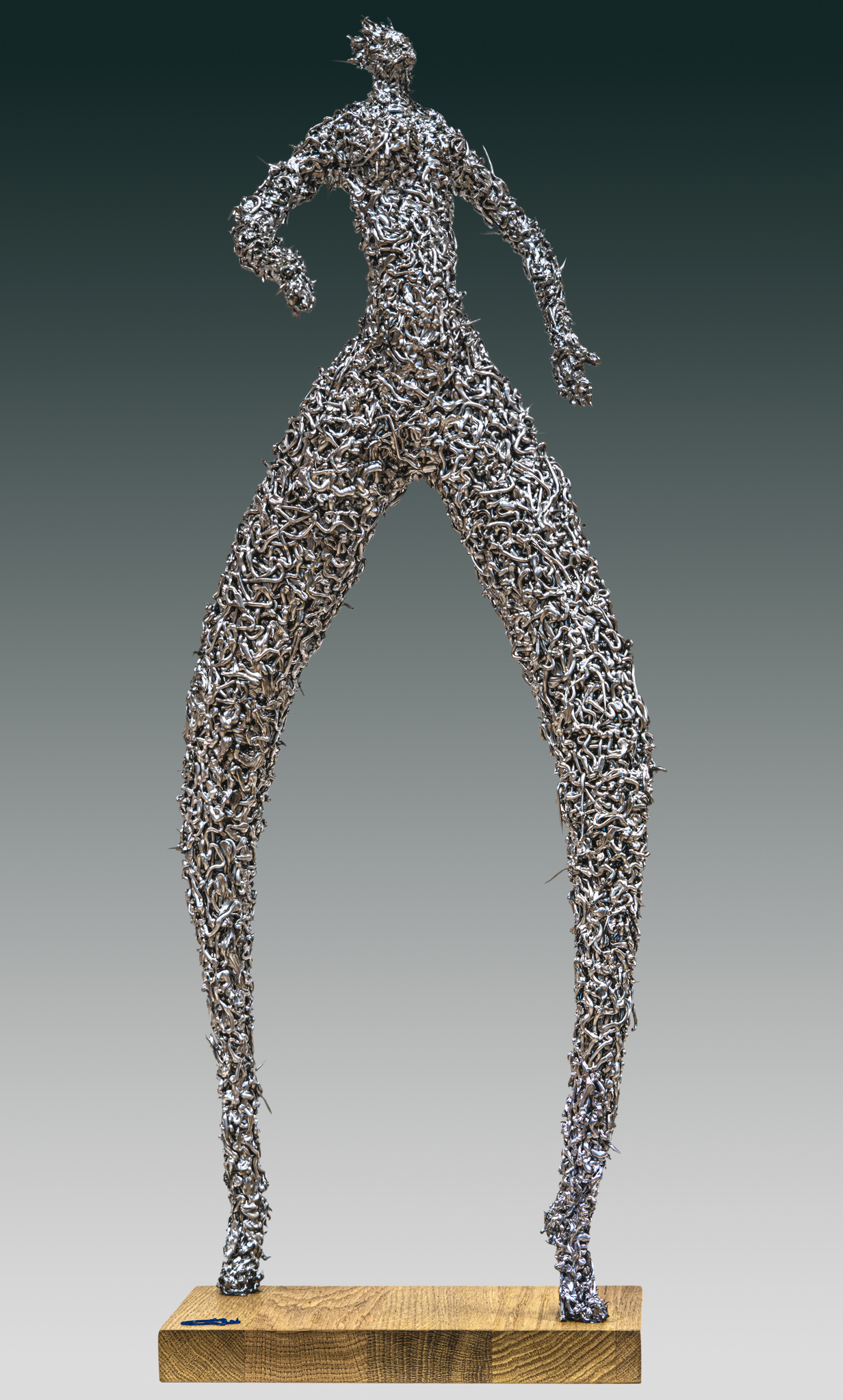 Ik wilde een heel ander soort beeld creëren, zowel in vorm als in materiaal. Om mijn perspectief op vorm en materiaal te verbreden, ben ik op zoek gegaan naar verschillende soorten materialen. Materialen die ik nog niet gebruikt had en die niet in eerste instantie voor vomgeven bedoeld zijn.Tevens moesten ze een andere structuur hebben en een andere tastbaarheid. Door me op onbekend terrein te wagen, word ik gedwongen te experimenteren en op zoek te gaan naar een andere manier om met materiaal en vorm om te gaan. Uiteindelijk kwam ik op een soort siliconenlijm waarmee ik invulling kon geven aan mijn sculpturen op een manier die aansloot bij wat ik voor ogen had. Ook stelde dit materiaal mij in staat om een eigen dynamiek toe te voegen.