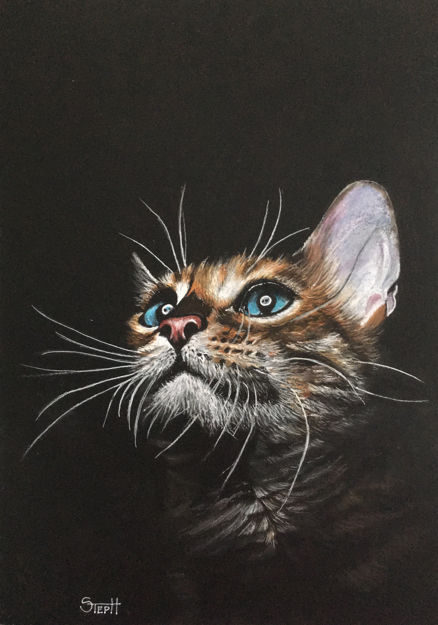 Poes pastel tekening op papier fotmaat A4