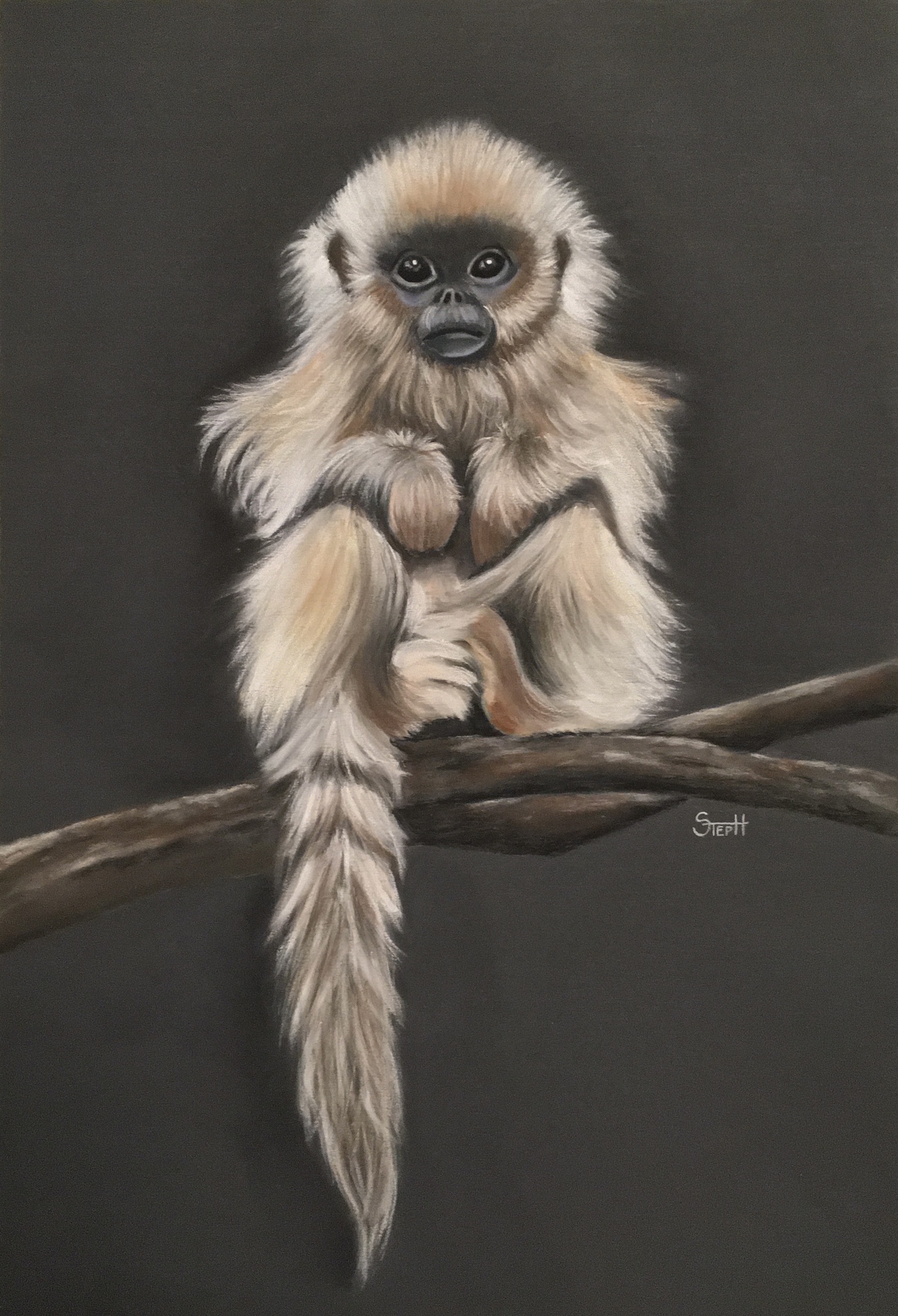 Chinees gouden stompneus aapje pasteltekening op Uart papier 40x30cm