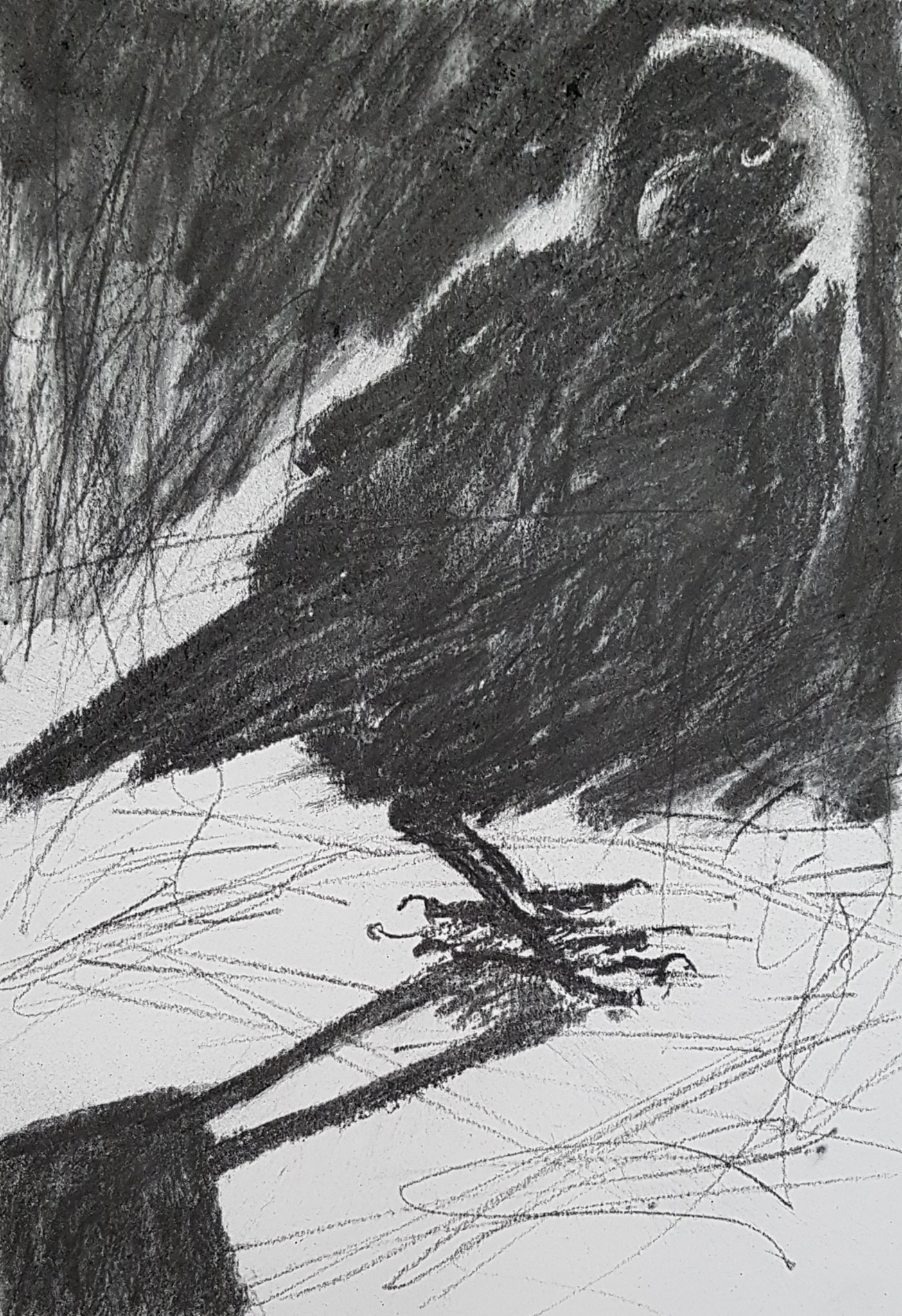 Zwart Vogel Tekening Houtskool Kauw Kauwtje Jackdaw Corvus Monedula Dohle