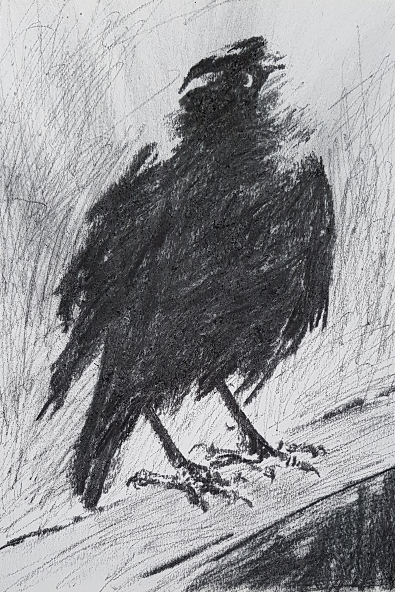 Zwart Vogel Tekening Houtskool Kauw Kauwtje Jackdaw Corvus Monedula Dohle
