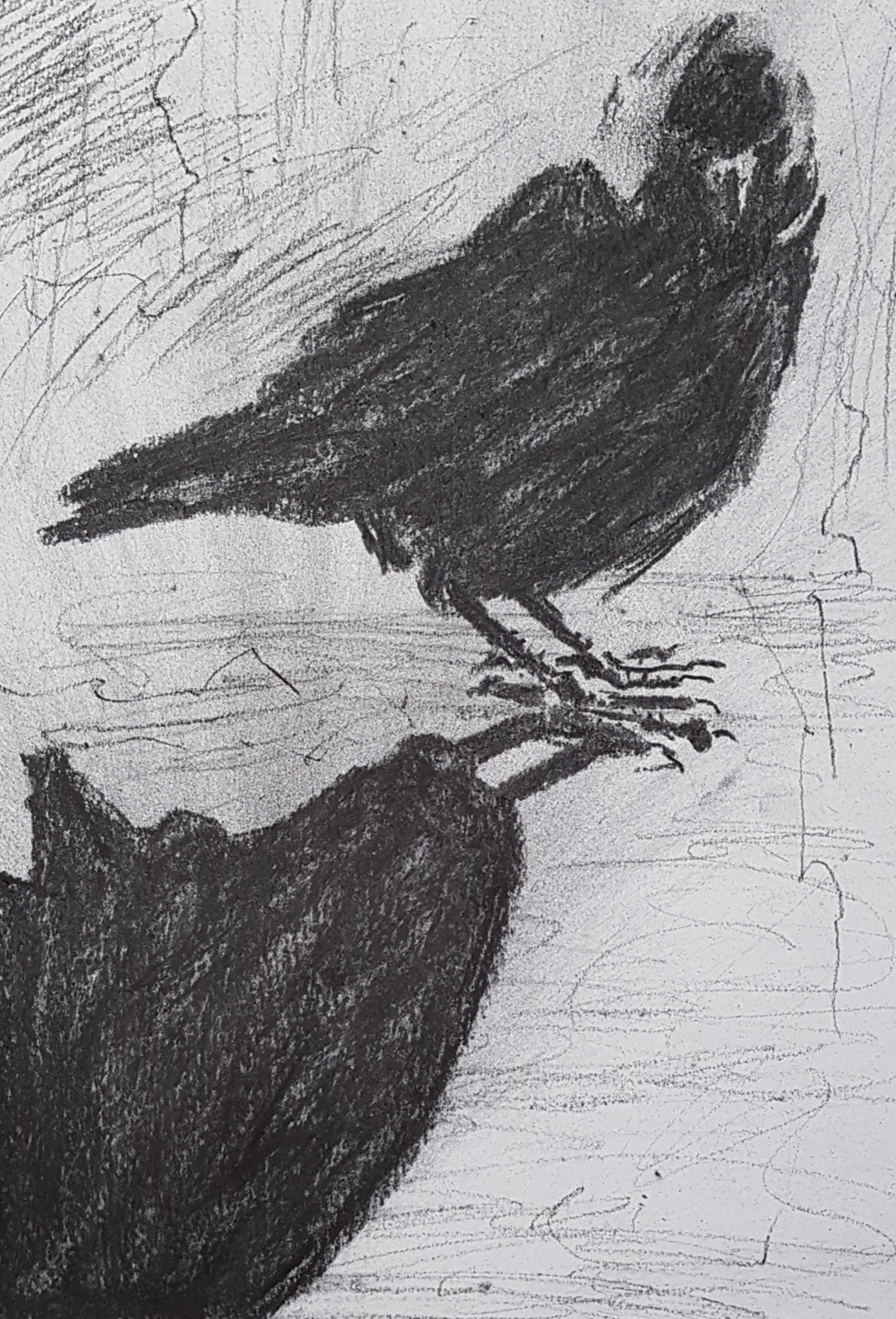 Zwart Vogel Tekening Houtskool Kauw Kauwtje Jackdaw Corvus Monedula Dohle