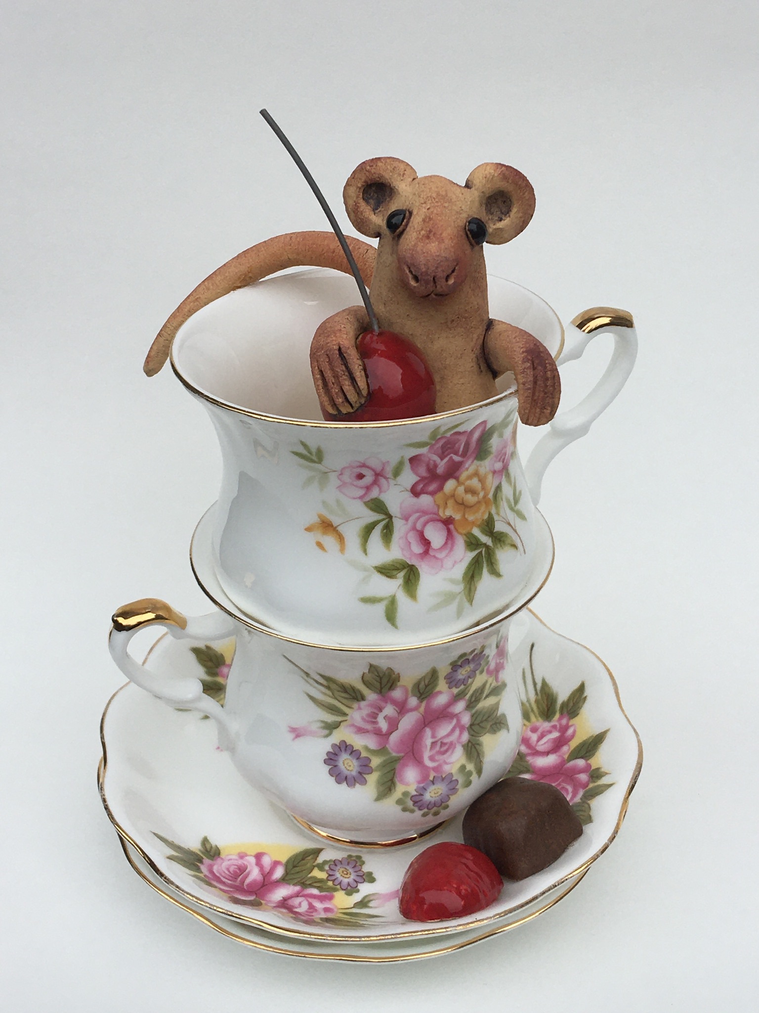 Twee Engelse kopjes met muis en besje