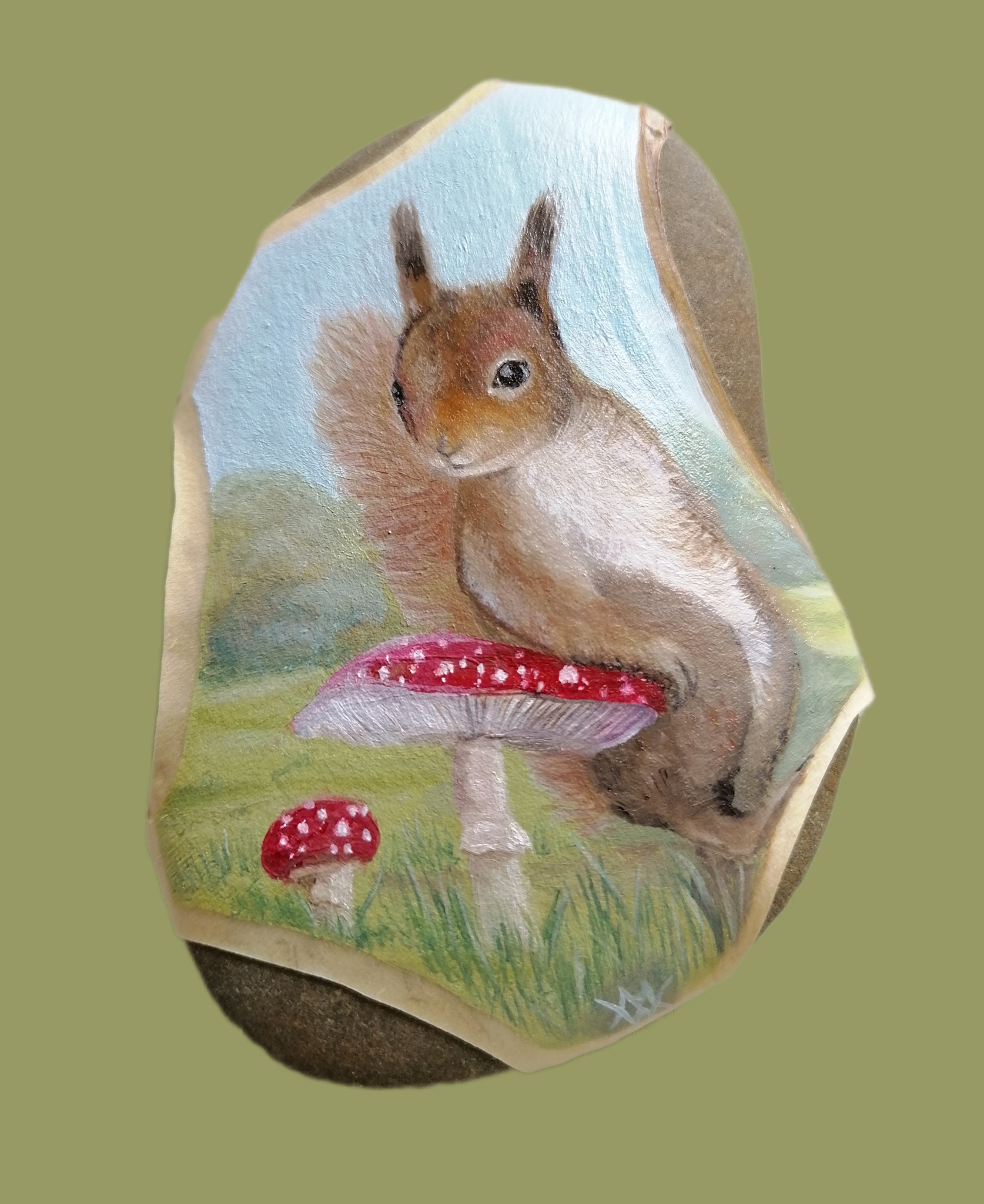 Herinnering Art Water Papier Steen Aquarel Realistisch Kunst Kaart Cadeau Symboliek Rivier Stenen Eekhoorn Vliegenzwam River Colour Beschilderde Doosje Persoonlijk Stone Fine Paddenstoel