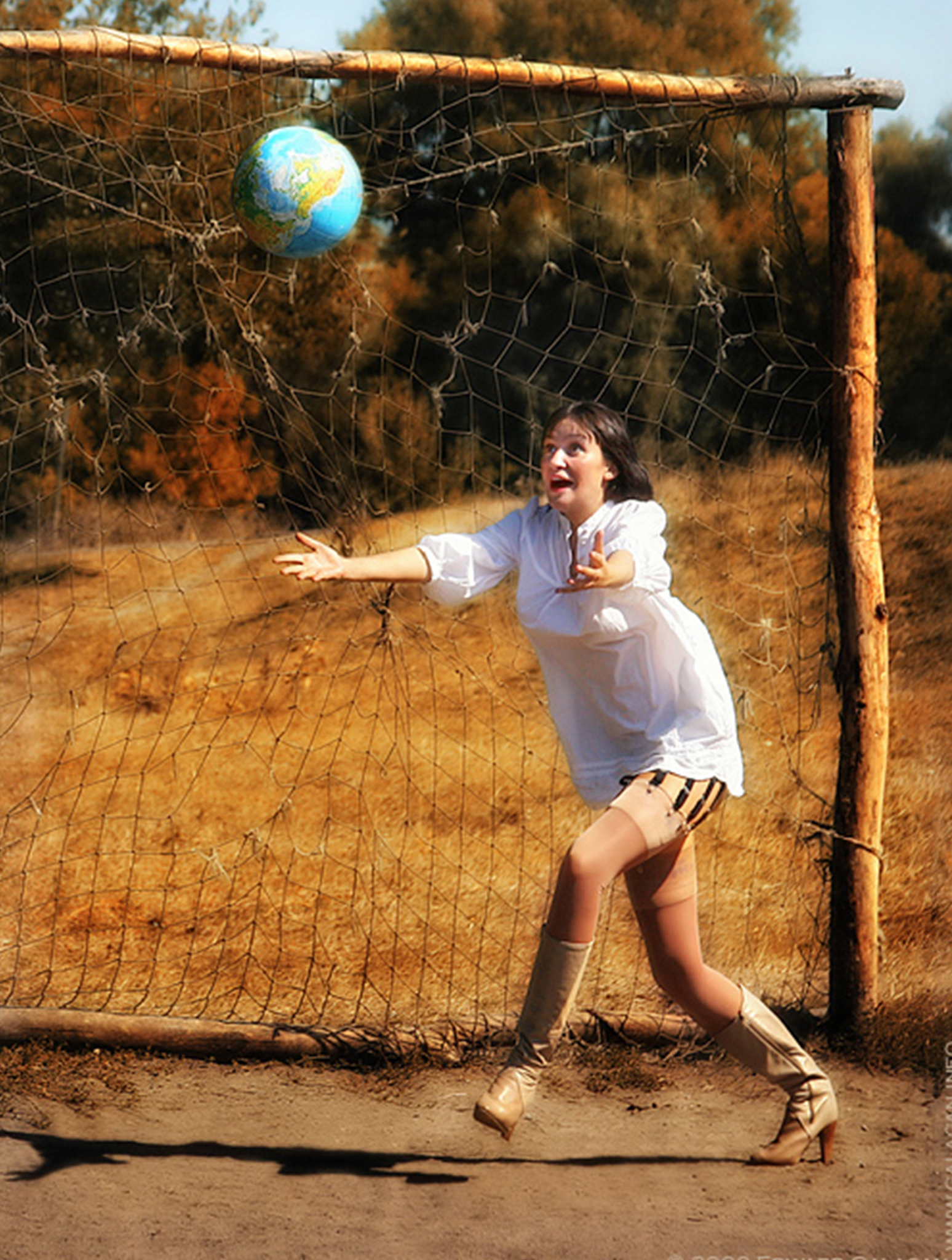 ©2009 Edward Galagan ............................ "Beauty will save the world" ? Fyodor Dostoyevsky, The Idiot. F.M.Dostoyevsky once let drop the enigmatic phrase: "Beauty will save the world." Nobody knew what this phrase means! :-) But here and now everybody can see how it will be in a reality: "Bad guys play the Earth like a ball, and only a brave beautiful woman can save the World and even protect the soccer goal" :-) Seriously, I think this is a good romantic idea. Dostoyevsky expressed in one phrase very deep philosophic idea. We will be saved by the beautiful things around us, and the world will be saved if it can be made more attractive. There is beauty in everything. We would only stop and see around. We can do that for many people by our photo cameras, eyes, and hearts! Thanks for your attention to this work and reading this text!