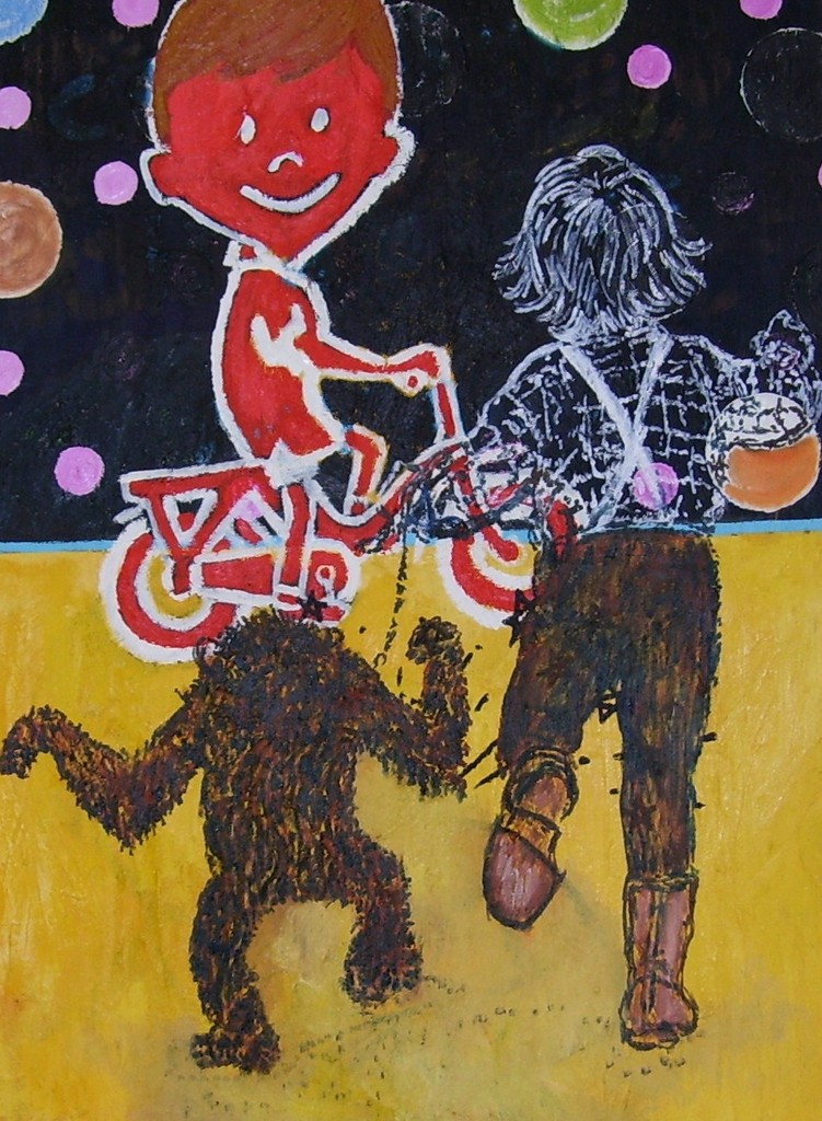 Dieren Fietser Kinderen Spelen Vintage Illustratie Vet Sale Kunst Leuk Film Kleur Popart Schilderij Schilderkunst Sixties Fifties Lopen Vriend