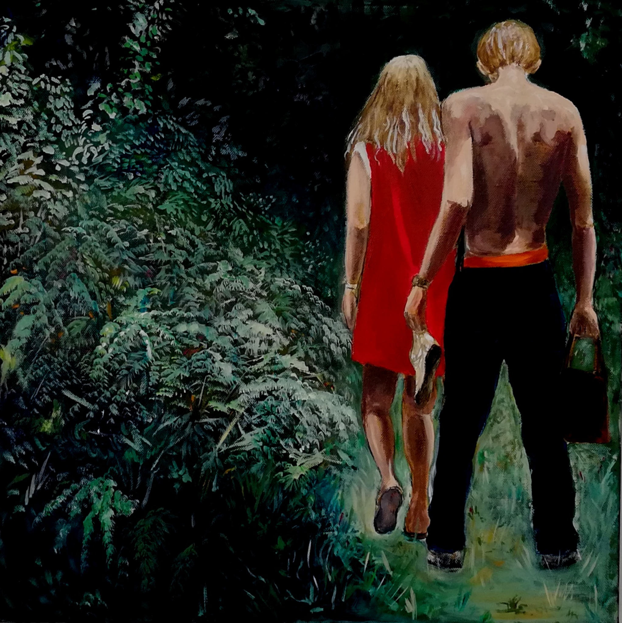 Olieverfschilderij op doek, gebaseerd op een oude vakantiedia. Een mysterieus beeld, dat de persoonlijke herinnering ontstijgt.