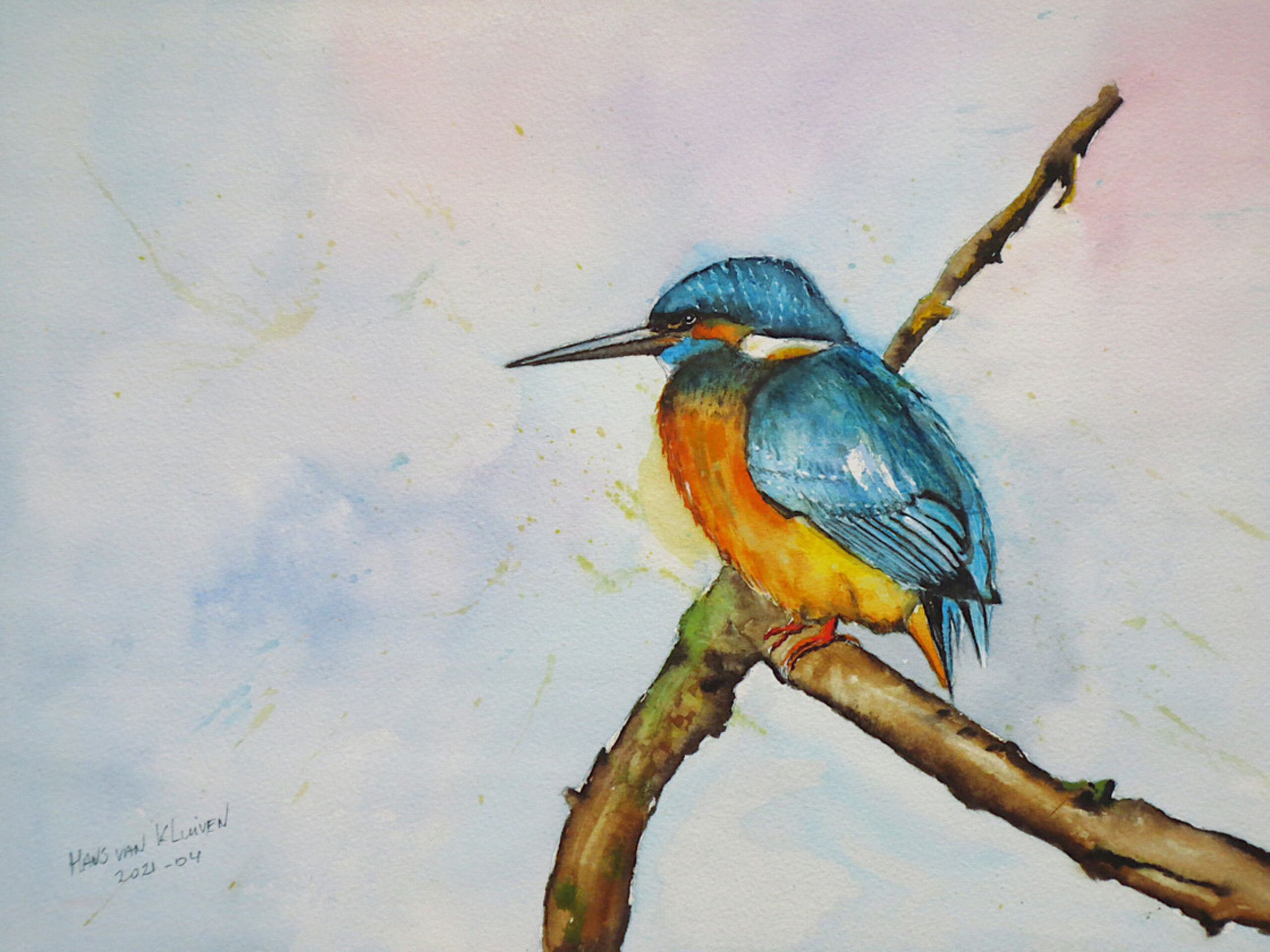 IJsvogeltje, Kingfisher, aquarel uit een serie van 4 van vogels die veel in mijn buurt voorkomen.