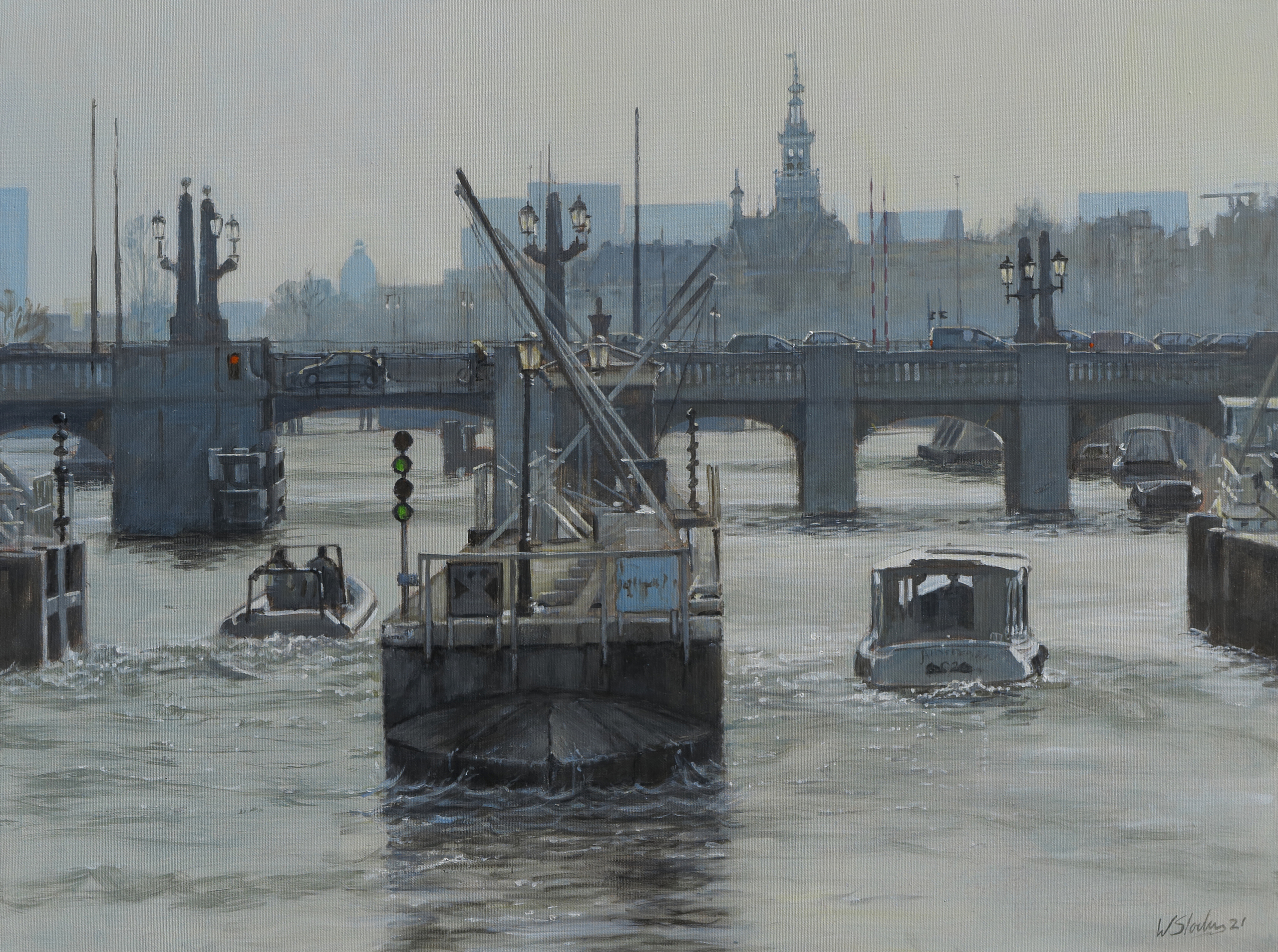 Grijs Amsterdam Brug Tegenlicht Verkeer Amstel Scheepvaart