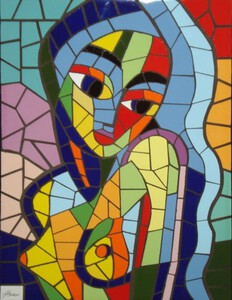 Mijn eigen stijl is kleurrijk, heftig, expressief en fantasierijk. Kleur en lijnen spel zijn voor mij dan ook de belangrijkste componenten bij het maken van mozaïeken.